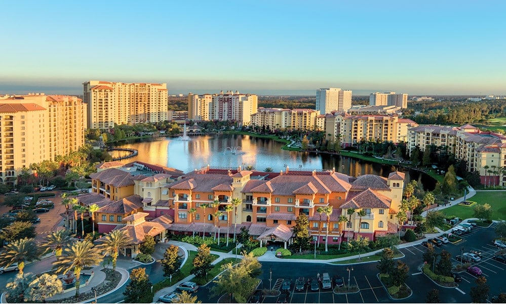 Orlando Resort Next to Disney Magic | Lazy River + Fire Pit Start your morning with coffee on your private balcony, just minutes from Walt Disney World. After a fun-filled day, float along the lazy river, soak in one of the outdoor hot tubs, or unwind by the fire pit under the stars.
