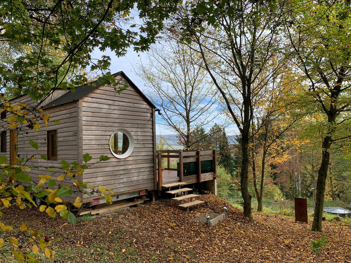 Desfrute da vista panorâmica do terraço da casa minúscula sobre as florestas e montanhas de Weserbergland. Relaxe ao som da natureza na banheira de hidromassagem. Siga os seus sonhos enquanto balança na cadeira suspensa em frente ao cenário da árvore. A nossa pequena casa tem um carácter de casa na árvore devido à localização elevada e às árvores imediatamente adjacentes e está encantadoramente localizada na orla da floresta.