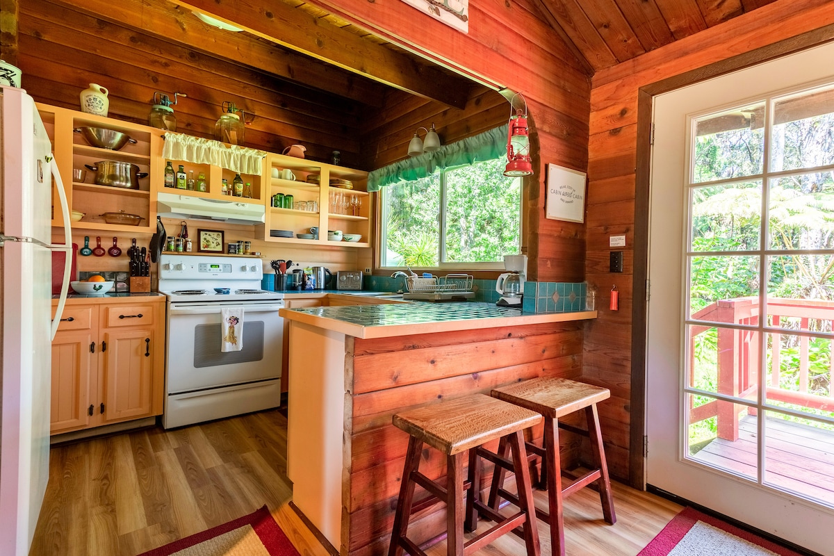 Tucked away on 3 acres of native rainforest the Pele Guest House at Volcano Village Retreat is the perfect spot to rest and relax after a day of exploring Volcanoes National Park located just 2 miles away. We can't wait to make the cottages the most perfect vacation spot for you!