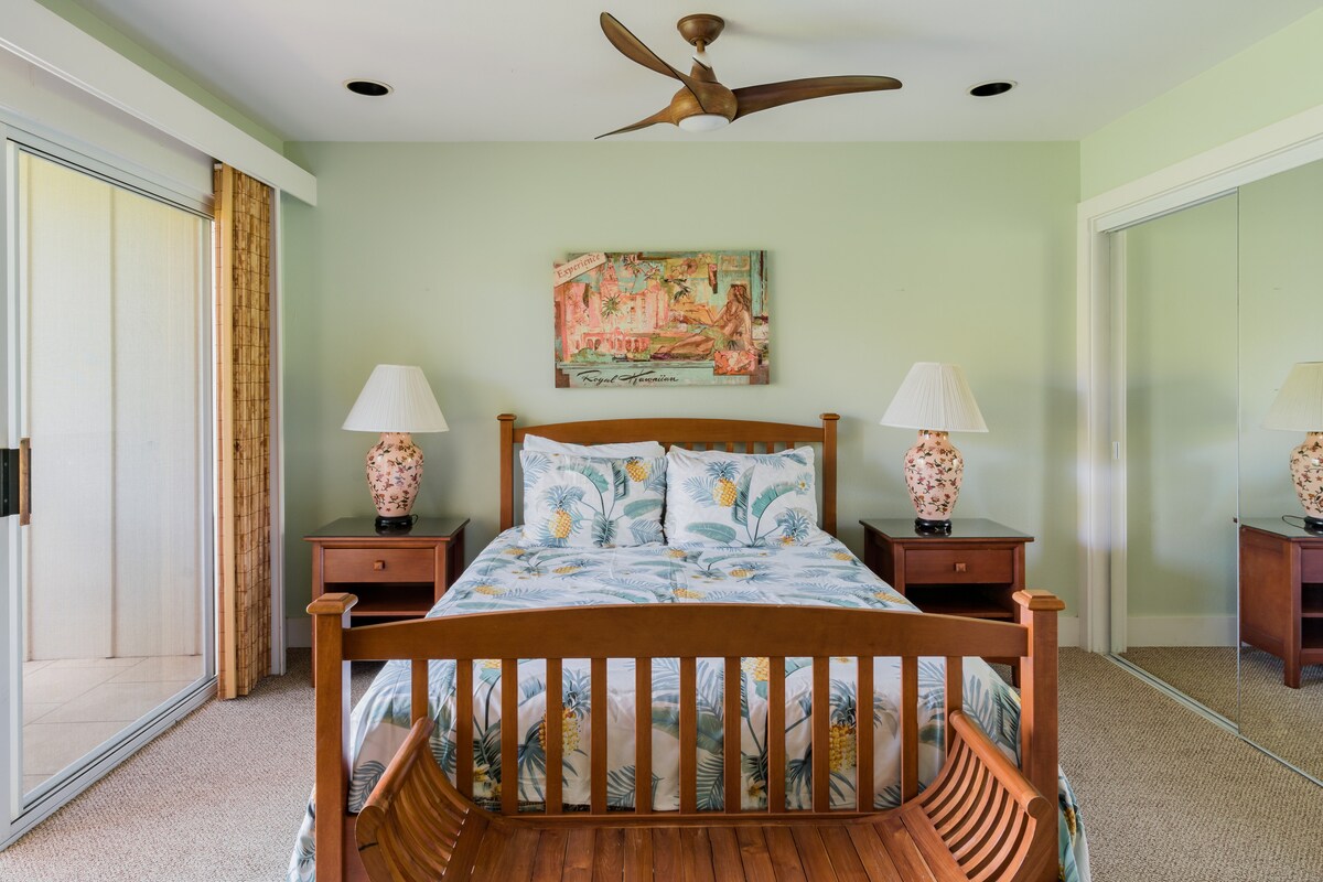Overlooking a nature reserve and the Kona coast, The Koi House echoes a relaxed way of life. Enter via a lush walkway over a koi pond and step into the guest wing to the Hala Suite, a welcoming space designed with colorful boho textiles and natural accents. Enjoy a beautiful shared pool, savor sunsets and ocean views from the lanai, and immerse yourself in laid back Hawaiian living. It's the perfect home base for all of your adventures and a quick 10 minute drive from the heart of Kailua-Kona.