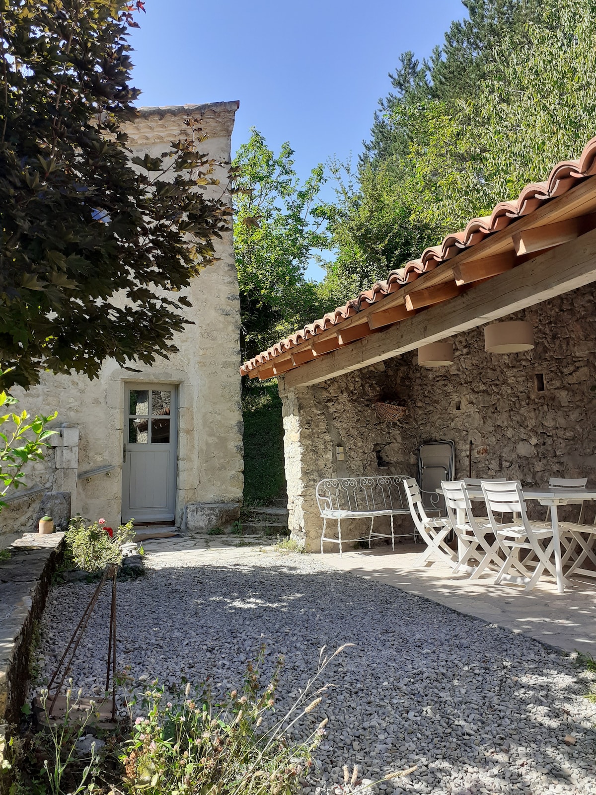 Notre maison d'hôte s'appelle : la ferme saint pierre Drôme. Il y a votre gite et 2 suites de 50 m2. C'est situé dans l'ancienne ferme magnifique du 18e siecle. Votre gîte de 50m2, est complètement autonome ; Vous disposez aussi d'un espace sous une tonnelle pour déjeuner dehors. La piscine vous est accessible, dans un magnifique jardin avec vue sur le Vercors. Des ballades à pieds en sortant et sur le Vercors à 10 mn. Centre village à quelques minutes et gare tgv à 15mn.