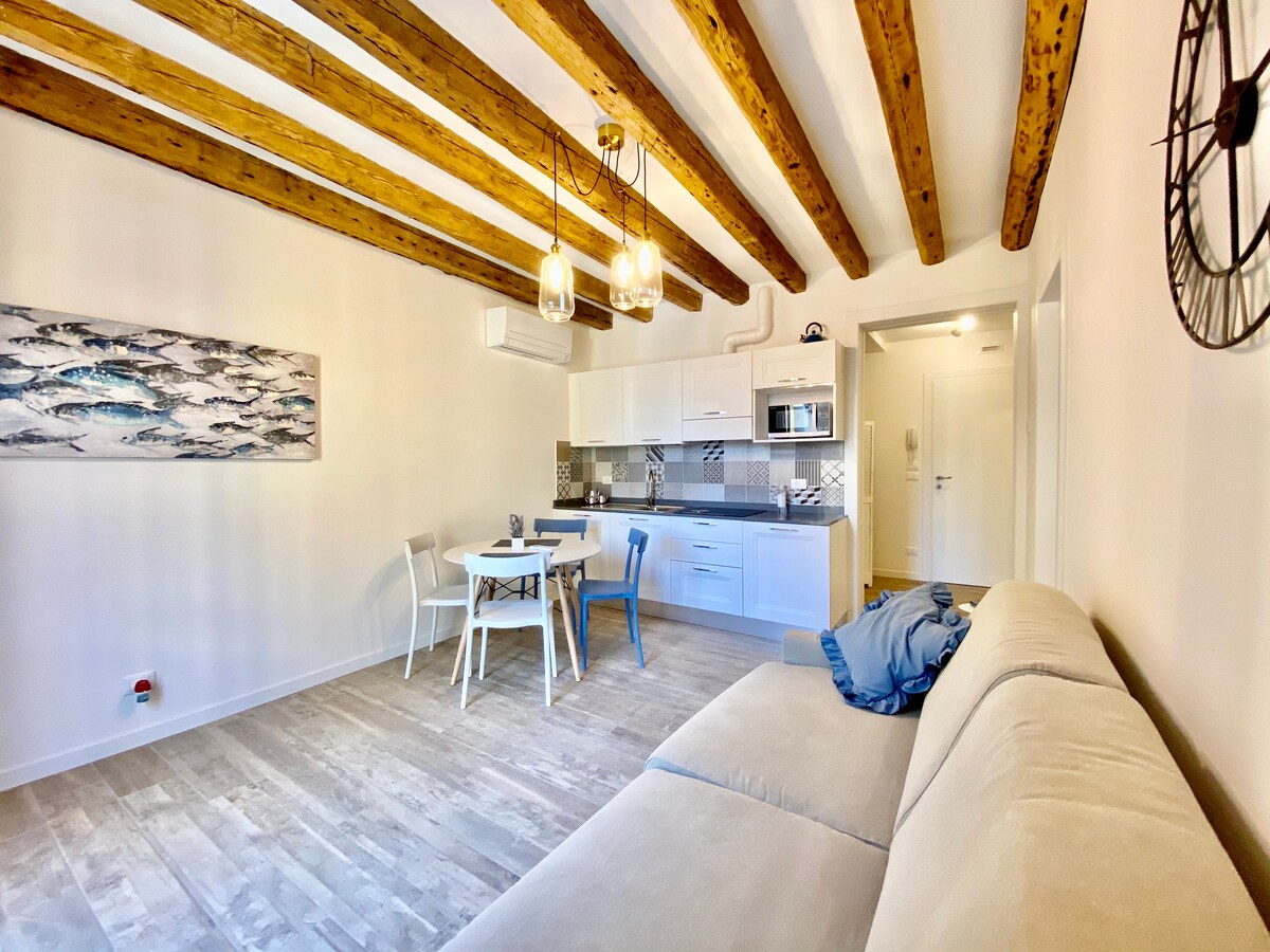 O apartamento luminoso é uma combinação perfeita de estilo moderno e tradição: enquanto todas as peças de mobiliário são novas, o piso de mosaico branco, o teto com vigas e detalhes decorativos refletem os interiores típicos venezianos. O apartamento está equipado com os seguintes serviços: - cozinha totalmente equipada com cozimento por indução e forno combinado; - ar condicionado na sala de jantar/cozinha e no quarto; - toalhas e lençóis limpos; - Wi-Fi de alta velocidade (e conexão Ethernet); - TV Cinema com decodificador Sky (com assinatura de canais internacionais), sistema de som de música. A Ponte Rialto fica a apenas sete minutos de distância, ou aventure-se um pouco mais longe até a Piazza San Marco em cerca de 15 minutos. Perder-se nas vielas pitorescas faz parte da beleza de explorar Veneza. Por favor, respeite a beleza! Como você vê, tudo foi projetado e feito sob medida para se encaixar perfeitamente neste pedaço do céu. Colocamos nosso tempo e toda a nossa paixão para criar este pequeno oásis: por favor, comporte-se como se estivesse em seu próprio lugar. Por favor, note que, uma vez que a sua estadia for confirmada, eu precisarei de uma foto do seu documento de identificação. Obrigado desde já pela colaboração.