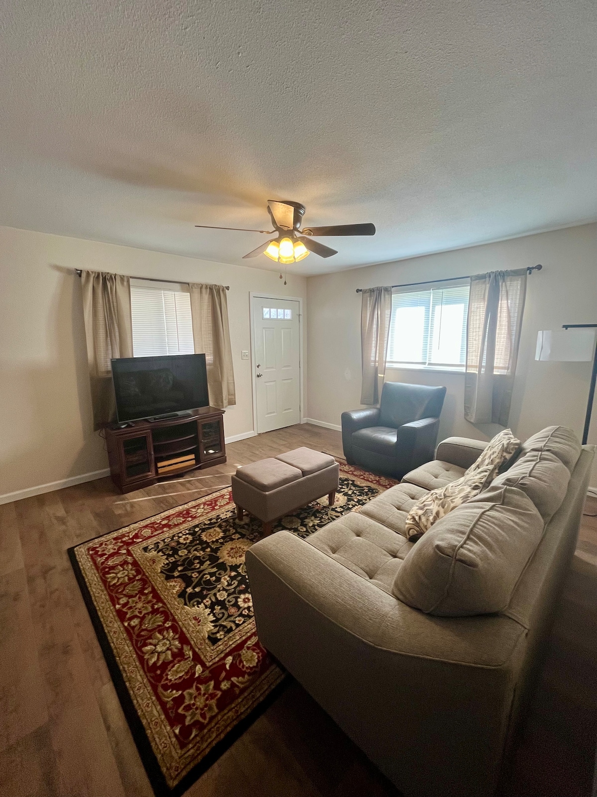 Cozy 2-Bedroom, 2-Bath Retreat Enjoy a comfortable stay in this spacious 3-beds, 2 full bathroom home. Features include large closets, hangers, and tons of storage space. The kitchen is fully equipped with a blender, toaster, microwave, coffee machine, and dishwasher. Plus, enjoy a 55-inch TV, fast Wi-Fi, and laundry essentials (washer, dryer, detergent, softener). Towels, body soap, shampoo, and conditioner are provided for your convenience. Also centralized to the area and near interstate.