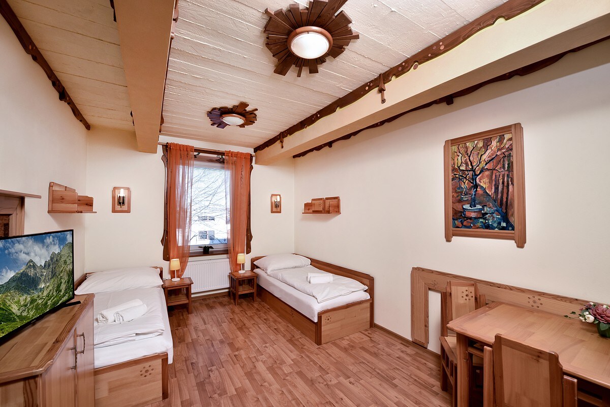 A Pension Víchrica está localizada na aldeia de Podtatranska, em Veaisská Lomnica. A aldeia tem uma excelente localização para acessibilidade rápida e fácil. A Pension Víchrica é um edifício alemão recentemente renovado, construído em 1895. O quarto familiar também é adequado para uma família múltipla. É composto por dois quartos e uma casa de banho. Há um espaço de bem-estar privado para os hóspedes que inclui uma sauna e uma banheira de hidromassagem. Há também uma cozinha partilhada totalmente equipada para os hóspedes.