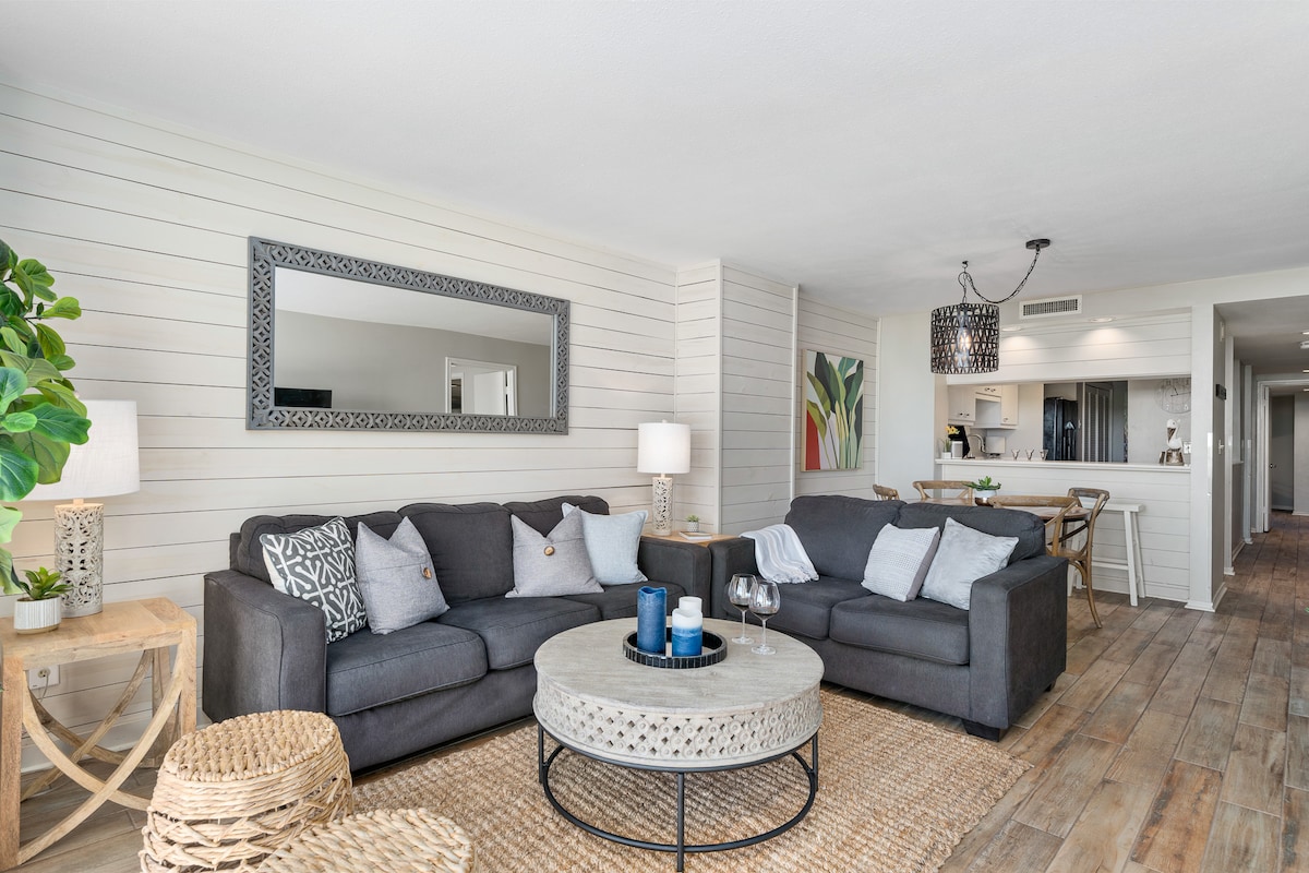 A UM QUARTEIRÃO DA PRAIA — caminhadas ao pôr do sol, castelos de areia e dedos dos pés no oceano. Volte para casa para grelhar, dar um mergulho na piscina e criar memórias inestimáveis em um lindo apartamento contemporâneo, alegremente mobiliado e banhado pela luz do sol de todos os cantos! Mesa de jantar com 12 lugares. Saboreie café e coquetéis na varanda de grandes dimensões. Estacionamento de barcos no local. Alugue uma bicicleta ou carrinho de golfe e explore — há algo para todos os gostos em Port A, e a diversão nunca para! Você não vai querer sair... e você é bem-vindo de volta para mais!