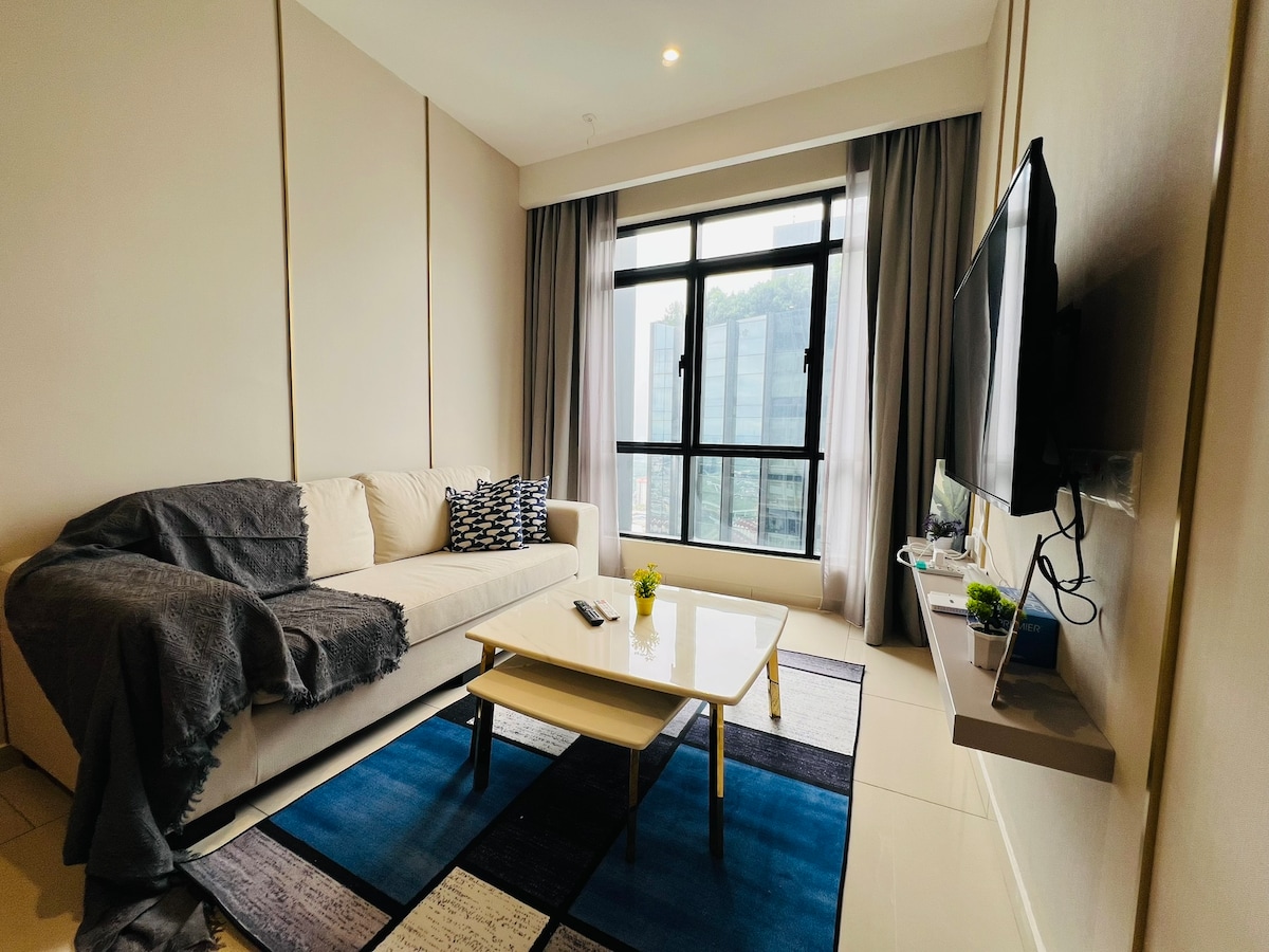 Espaçoso e intimista. Como esta é a minha 5ª unidade, demos um passo à frente e alugamos uma suíte de 1 quarto com uma área de estar aconchegante e uma unidade de área de jantar. Com uma vista majestosa de Cyberjaya da sua janela, nada é mais fantástico do que isso. Perfeito para estadias mais longas, seja para lazer ou negócios. Estamos conectados à Tamarind Square por meio de uma passarela sombreada com todas as necessidades que você precisa durante sua estadia.