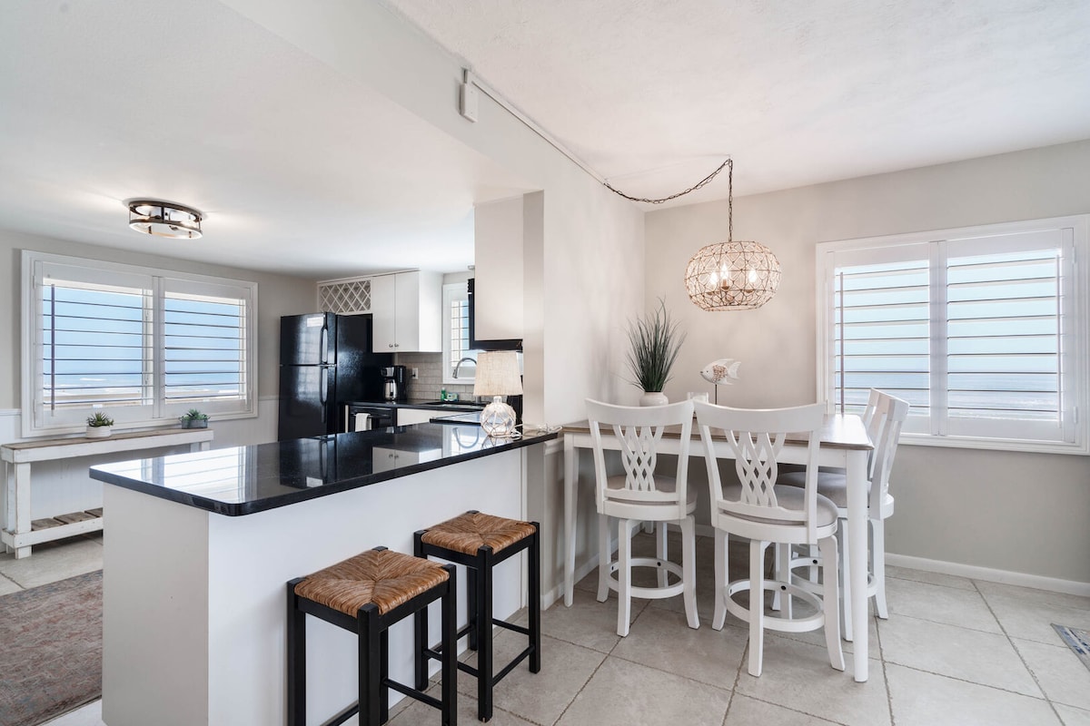 Vibrações costeiras descontraídas a apenas 2 quarteirões da praia! Completamente renovado, piscina privativa, acessível a vários restaurantes, bares tiki, lojas e atrações. Piscina e espreguiçadeiras de praia, botes e brinquedos disponíveis para sua diversão! Também fornecemos uma carroça de praia para ajudar a transportar suas coisas na curta caminhada até a praia. Lindas praias amplas que você pode dirigir! Rampa para dirigir na praia a apenas 1 minuto de distância. 🐾 Aceita animais de estimação 🌊 Acessível a pé Localização 🚶fantástica a 📍2 quarteirões da praia Gerenciado pelo proprietário ⭐️