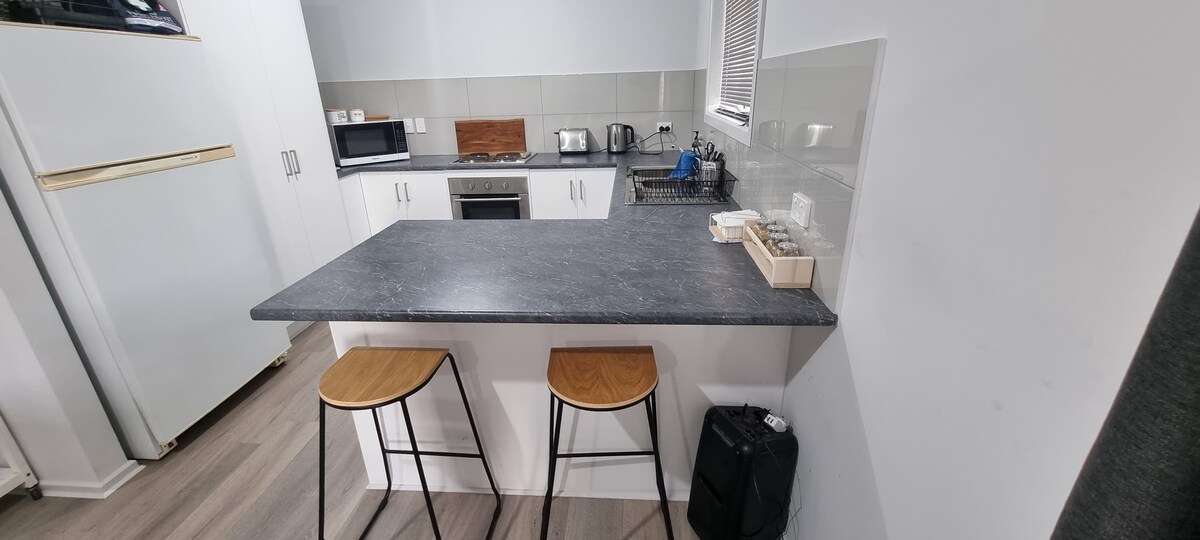 O Osprey é um refúgio de um quarto recém-reformado para casais. Uma cama king size com lençóis Sheet Society de pelúcia e móveis macios para uma noite de sono repousante e relaxante. Desfrute de relaxar entre minha grande e sempre mutável coleção de plantas internas ou refresque-se no novo banheiro e saia para relaxar no sofá-cama com um vinho, um livro ou relaxar e assistir aos pássaros locais se divertindo nas banheiras de pássaros no jardim nativo recentemente plantado. Desfrute das novas instalações de cozinha ao ar livre
