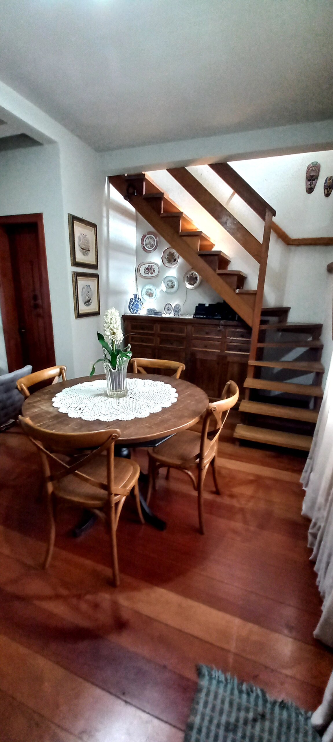 Sobrado rústico, proximo ao centro de Portão. Lugar tranquilo, todo equipado, cozinha completa, roupas de cama e banho. O sobrado tem um quarto com cama queen e banheirl no andar superior, no térreo tem sala de jantar, estar com fogao a lenha, cozinha e lavabo. Estacoonamento fechado em frente a casa.