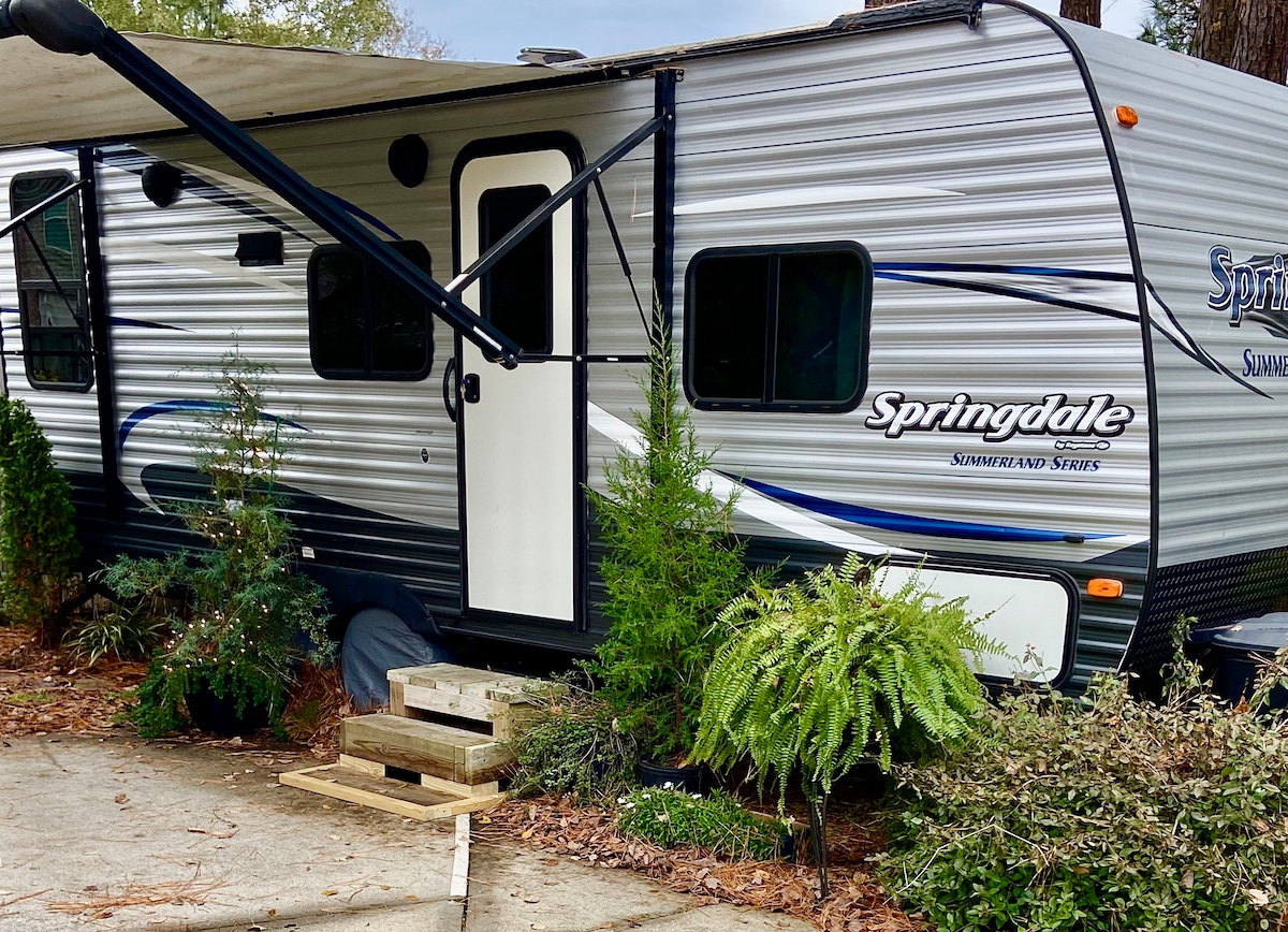 Ao ficar na Carriage House, a praia e as atrações de Wilmingtons são suas para aproveitar. A Carriage House está localizada no bairro Princess Place, ao lado de Burnt Mill Creek - um paraíso para observadores de pássaros. Fica a 1,5 km do centro de Wilmington e do Riverwalk e a 7 km da praia. Eu criei a Carriage House a partir de materiais recuperados. Desfrute da banheira de hidromassagem e da mesa de fogo. Pássaros de neve e nômades viajantes sabem que Wilmington é maravilhosa durante todo o ano!