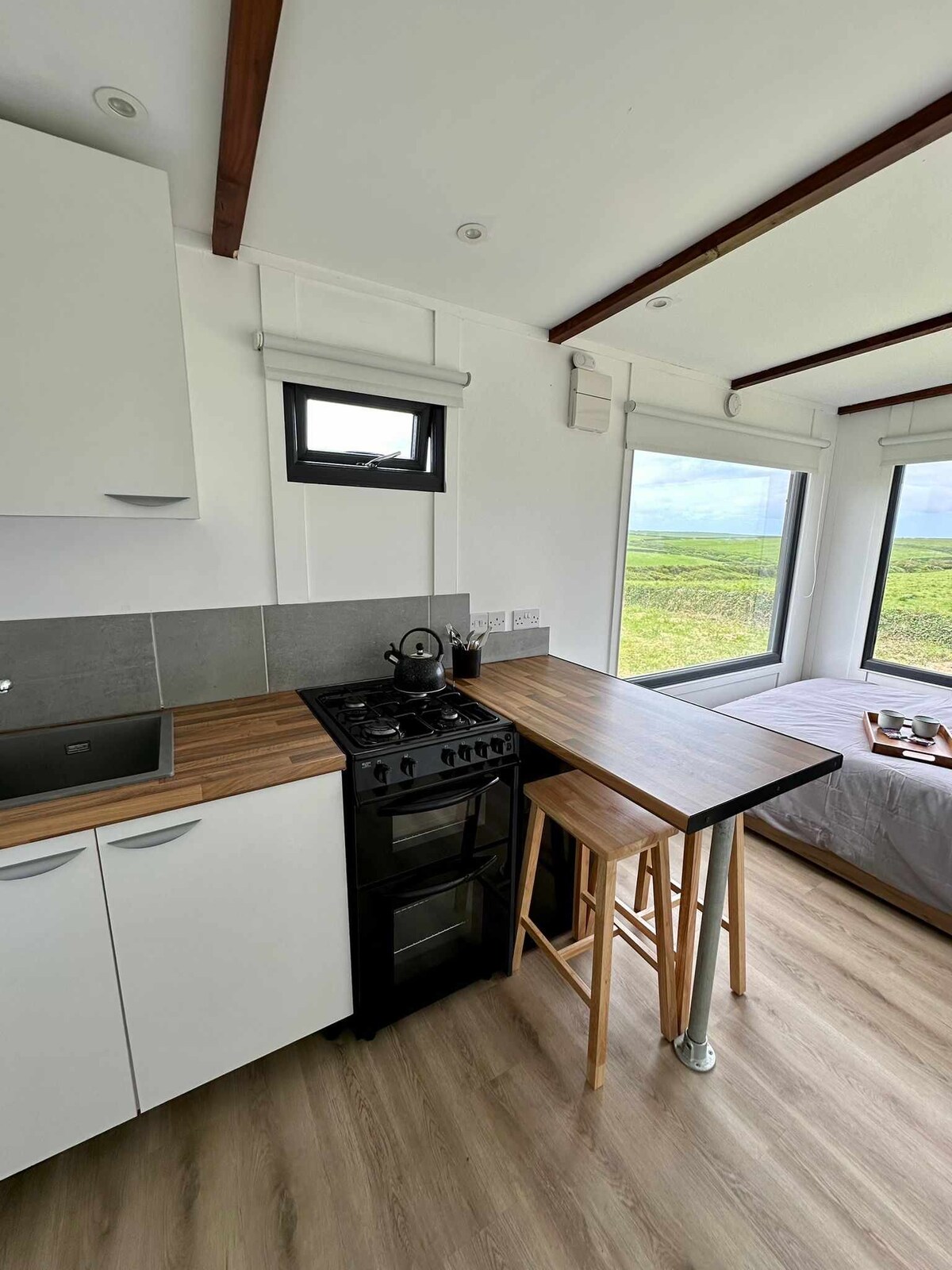 Esqueça as suas preocupações neste espaço espaçoso e sereno. Sunny Orchard é um alojamento novo (2025) de 40 pés x 20 pés. Situado numa quinta, pode desfrutar das vistas panorâmicas sobre campos abertos e em direção ao mar a partir da extensa área de terraço. Estamos a uma curta caminhada da praia, do trilho South West e da paragem de autocarro. Com um quarto principal com cama king e casa de banho privativa e um quarto com duas camas individuais de 90 cm, além de um sofá-cama, este alojamento é perfeito para casais, grupos tranquilos ou escapadelas em família.