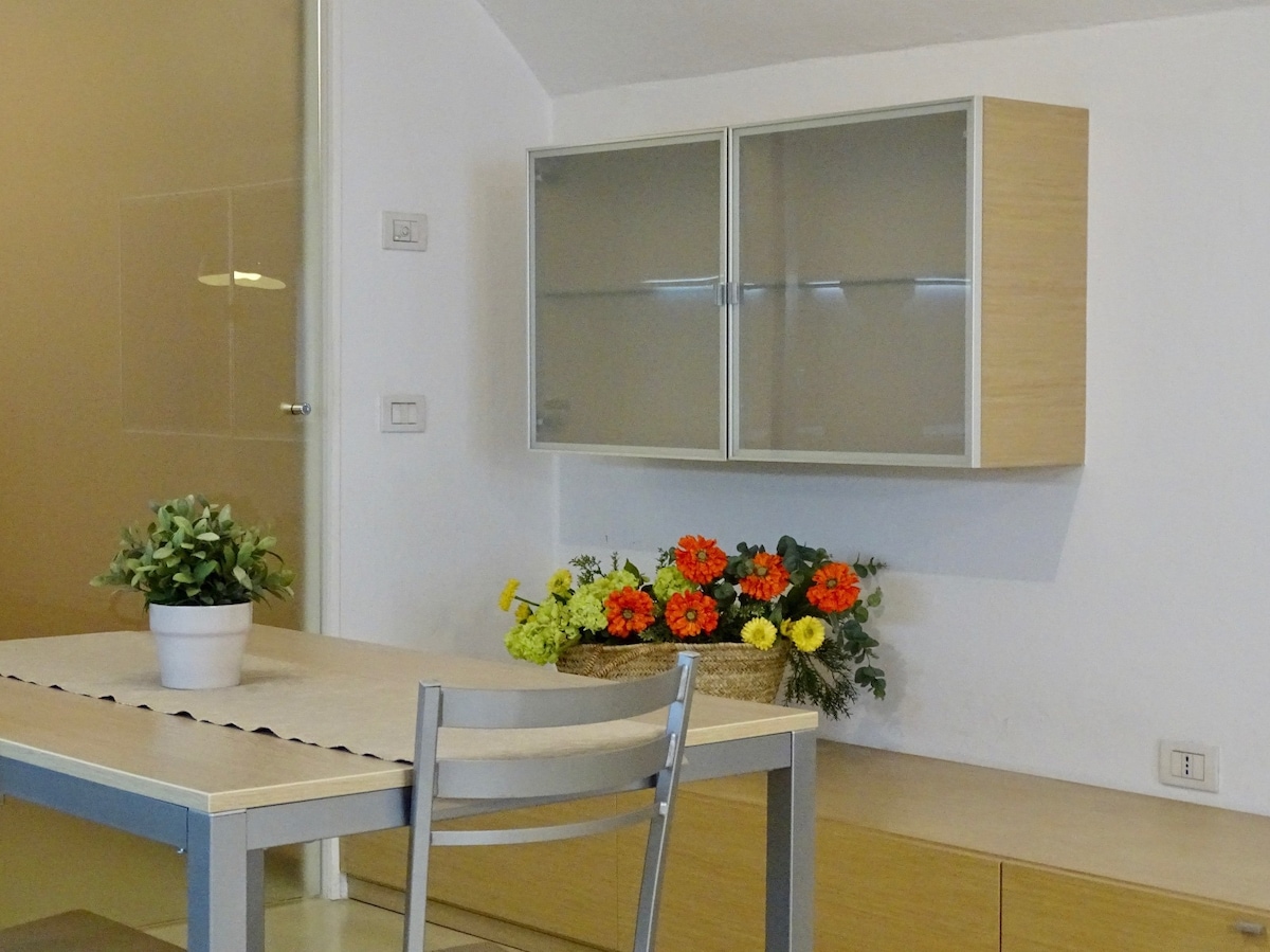 Apartamento encantador a poucos passos do centro histórico (7 minutos a pé) e muito perto do Palazzo Te. Decorado com obras de arte em estilo moderno. Localizado no segundo andar de um edifício Art Nouveau renovado com bons acabamentos e estilo. Perfeito para estadias curtas ou estadias prolongadas. Apartamento muito tranquilo, luminoso e aconchegante. Estacionamento mediante pagamento em frente ao edifício. O estacionamento será pago das 8h às 20h e gratuito das 20h às 8h (linhas azuis).