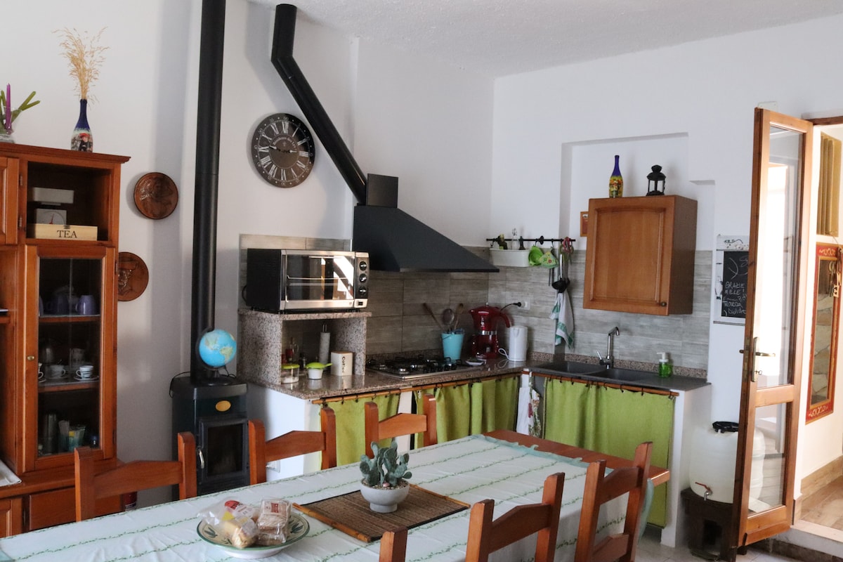 Nossa casa confortável fica em uma pacata vila tradicional, a quinze minutos de carro das belas praias do oeste da Sardenha. O terraço tem vistas maravilhosas da aldeia, montanhas e o pôr do sol sobre o Mediterrâneo. Experimente boa comida, degustação de vinhos, pesca, cultura nurágica antiga, artesanato, ioga, golfe, surfe ou qualquer outra coisa que você desejar. Ajudaremos você a organizar isso. Se esta casa não estiver disponível, confira nossa outra casa clicando no meu perfil.