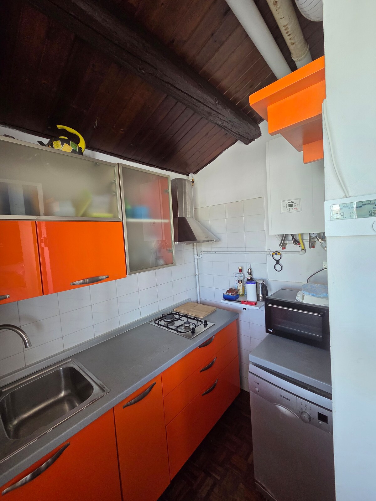 Loft em espaço aberto com cerca de 80 metros quadrados. O edifício tem 3 andares com elevador e chega-se ao sótão por um lance de escadas. Dentro de uma área de estar equipada com uma mesa de jantar, cozinha com máquina de café e forno de micro-ondas, TV e sofá-cama. A cama de casal fica perto do terraço com vista para o mar e que no verão é configurada com uma mesa e cadeiras . A casa de banho tem um chuveiro novo, uma máquina de lavar roupa e um lavatório. A área está bem servida e pode chegar à praia em 5 minutos a pé.