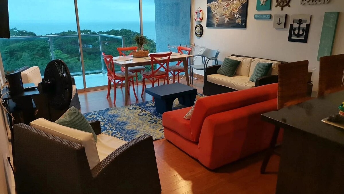 Um apartamento privado totalmente equipado de 2 quartos/2 banheiros à beira-mar na praia de Bala, no Panamá, com acesso a comodidades como vôlei, piscina, segurança 24 horas e muito mais. Acomoda até 4 adultos e até 2 crianças no máximo. Inclui Internet de alta velocidade, água quente e TV a cabo. Todas as comodidades de um lar. Bem-vindo ao Panamá!