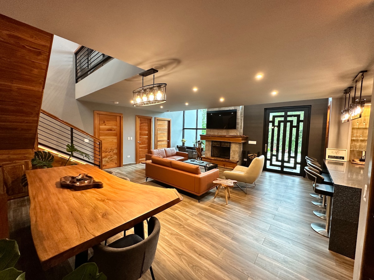 Desfrute do conforto desta casa privada espaçosa e central, localizada a apenas dois minutos a pé do centro de Boquete. Design espetacular com 3 quartos, área de trabalho, sala de estar-jantar confortável, cozinha totalmente equipada, banheiro com água quente e estacionamento com portão elétrico. Belas vistas do vale de Boquete a partir das varandas e do mirante. Casa cercada por uma floresta de bambu a poucos passos dos melhores restaurantes e atrações, em um ambiente tranquilo.