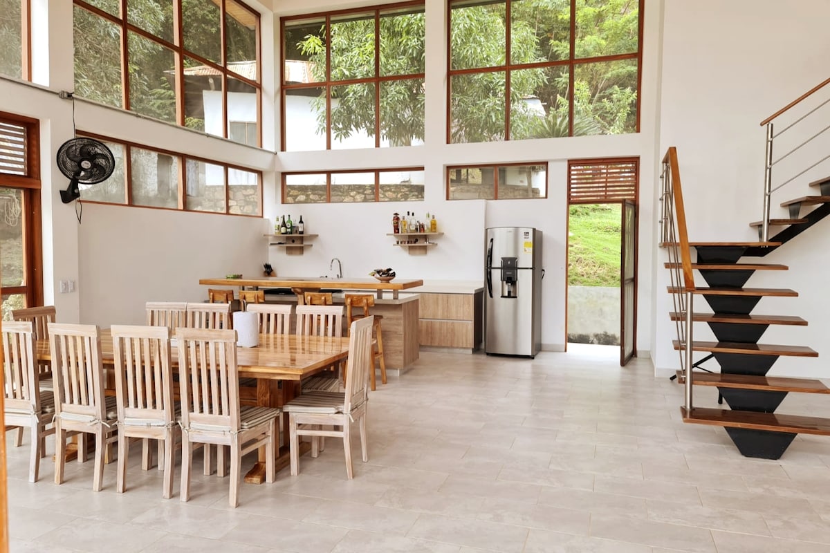 Disfruta esta casa fresca, con techos altos, piscina y a borde de lago. Reconéctate con la naturaleza y recárgate de energía. Disfruta de la vista y los espacios cómodos y amplios. Cocina abierta, hamacas, BBQ, piscina y ducha al aire libre. Pet friendly. Espacio para trabajar relajado, con Wifi. Practica deportes náuticos. Recomendamos traslados con un lanchero de confianza. Ofrecemos lancha con lanchero para 5 personas por un valor extra. La empleada se paga adicional por dia, directamente.