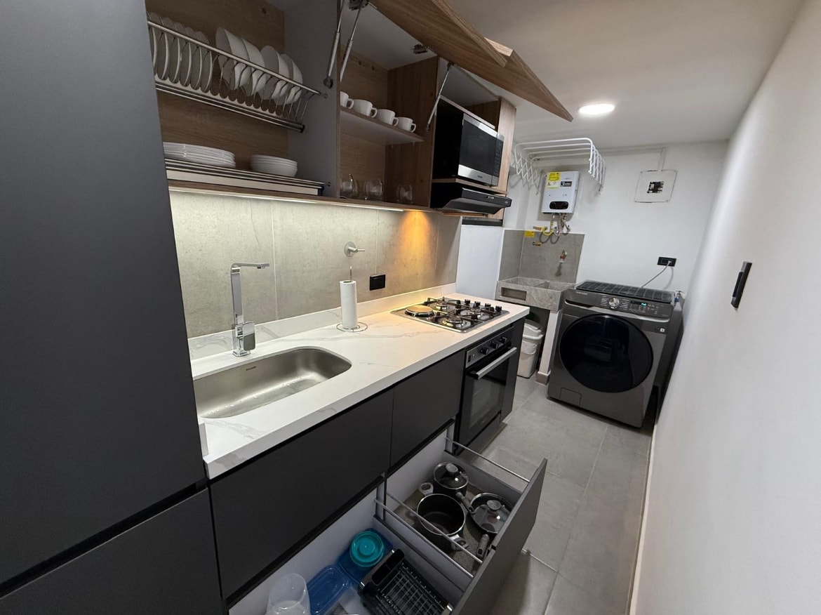 Venha ficar no nosso loft urbano, onde a elegância industrial encontra o conforto moderno no coração da vibrante vida urbana de Medellín. Desfrute de uma atmosfera elegante com tetos altos, paredes de tijolo expostas e detalhes industriais que misturam história com design contemporâneo. Estará rodeado pelos melhores restaurantes, boutiques e locais de entretenimento, tudo num edifício que oferece as melhores comodidades e segurança 24 horas por dia, 7 dias por semana.