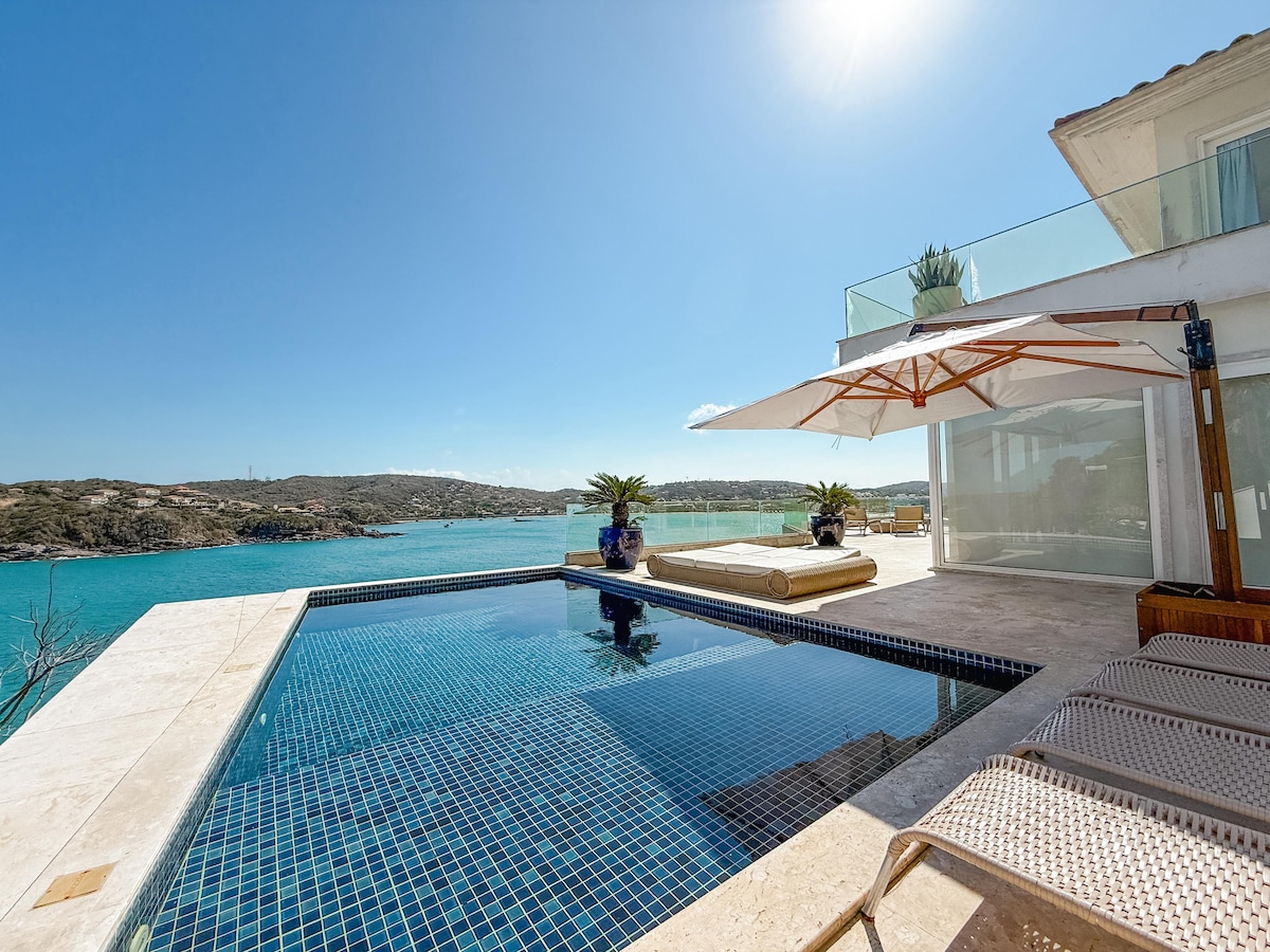 ViLLA OCEANO- Villa exclusiva à beira-mar com 5 suítes da Ferradura, Búzios. Desfrute de vistas deslumbrantes do mar, piscina infinita, acesso privado ao mar, total privacidade, segurança 24/7, apartamento opcional para funcionários, WiFi. Ideal para estadias de luxo, férias em família ou celebrações especiais com total conforto e segurança.