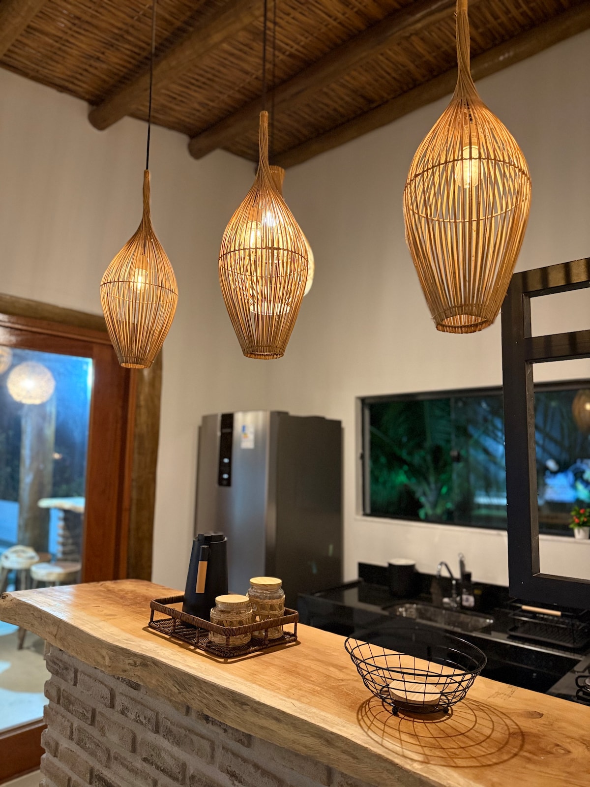 Este é o nosso BANGALÔ RISI!! Lugar único, tem um estilo próprio. De frente prá praia, todo completo, com deck, vista maravilhosa, tranquilidade e beleza. Preparamos tudo com muito carinho para receber pessoas de bom gosto! • O Bangalô Risi conta c/ 4 câmeras externas de segurança • O BANGALÔ RISI não fornece roupas de cama e banho. Caso haja interesse, deve contratar separadamente.( suspenso durante período de dez a março/2025)
