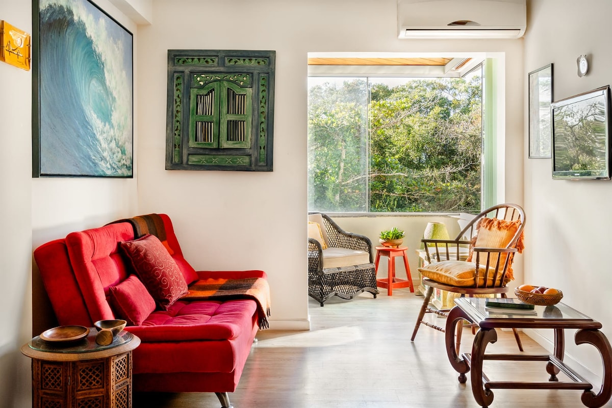 Ambiente acolhedor com bela vista para o mar, próximo a bares, restaurantes, e a poucos minutos dos mais badalados "Beach Clubs" de Florianópolis. Localizado em um bairro com excelente infraestrutura, é ideal tanto para casais, como para solteiros que buscam diversão. Possui uma cama de casal Queen, que pode ser convertida em duas camas de solteiro. Ideal também para executivos em viagem de negócios/cursos, tem wi-fi e espaço para reuniões. Possibilidade de locação mensal. Você vai adorar!