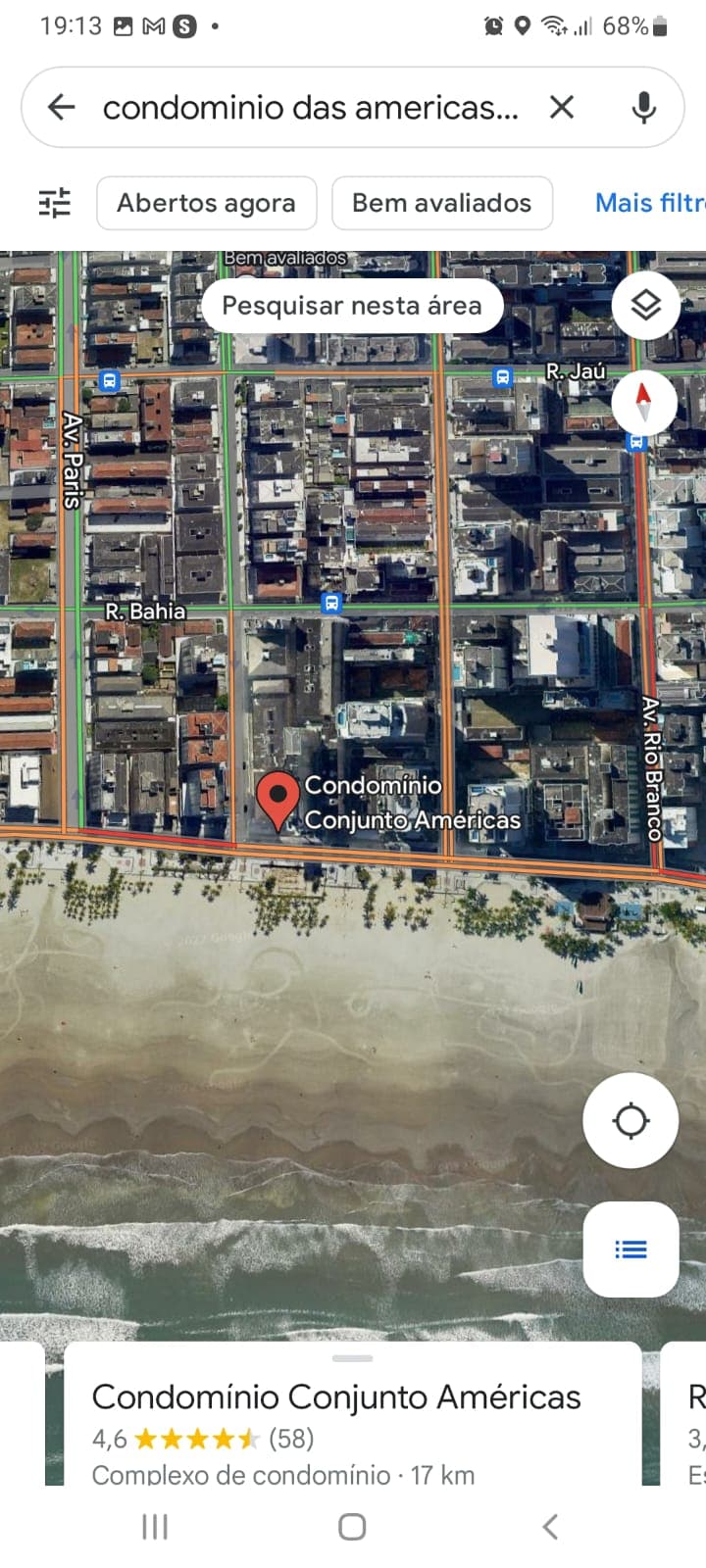 - Espaços em frente à praia Praia do Boqueirao
