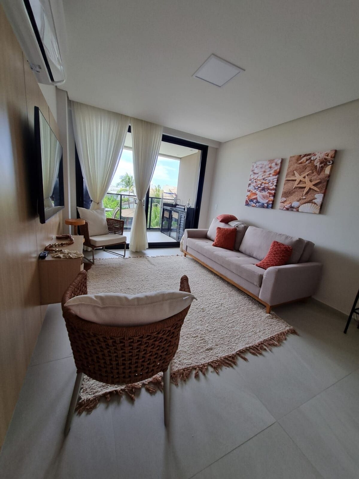 📍Flat a 20 passos da praia, 9 minutos a pé até a Rua das Sombrinhas e da Feira de Artesanato, ambas no Centrinho de Porto. 🏠 O Flat dispõe: •AR COND | TV(Sala e Quarto); •REFRIGERADOR, MICROONDAS; •FORNINHO tipo AIRFLY, FOGÃO COOKTOP; •SANDUICHEIRA, LIQUIDIFICADOR, FERRO, CAFETEIRA (Tradicional e Cápsulas | 2 Cáp Cortesia); •ENXOVAL CAMA/BANHO; •ÁGUA MINERAL 20Litros; •SECADOR CABELO, CHAPINHA, BABYLISS; •CHUVEIRO ELÉTRICO; •AMAZON PRIME | ALEXA; •COZINHA COMPLETA. 💳 PARCELE 6x Sem Juros;
