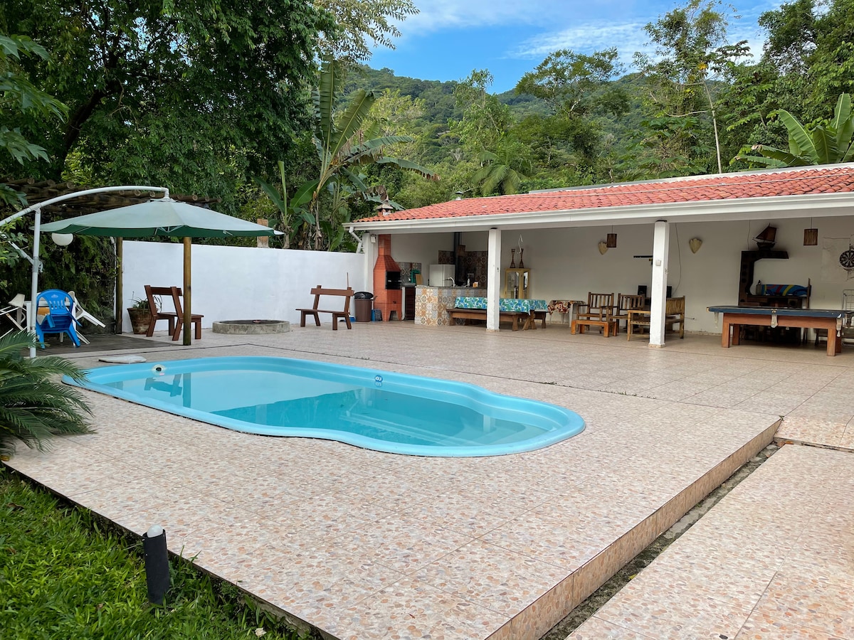 Um paraíso entre o mar e a Mata Atlântica. Ao lado do Porto e do Iate Clube Saco da Ribeira e à uma caminhada das praias do Lázaro, Sununga e Domingas Dias. Fogão e forno a lenha (perfeito para pizza), churrasqueira, freezer, mesa, redes e bancos para seu desfrute. Amplo espaço externo para crianças e pets se divertirem. ATENÇÃO: muitas casas e até apartamentos ficam sem água especialmente na temporada. Aqui temos captação própria de água da montanha, então não falta água!!