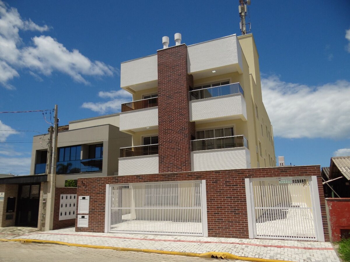 Apartamento novíssimo, encantador e aconchegante! Apenas 3 minutos até a praia, e na região mais central, na rua 238! Equipado com tudo para o seu conforto, como roupas de cama e banho, cobertas, travesseiros, Ar Cond, Internet. Acomoda até 4 hóspedes, em uma acolhedora cama de casal e mais um sofá cama. Dispõe de uma cozinha nova e completa, geladeira, fogão, cafeteira e todos os utensílios básicos para uma ótima experiência de estadia. Máquina de lavar e secar. Banheiro arejado água quente