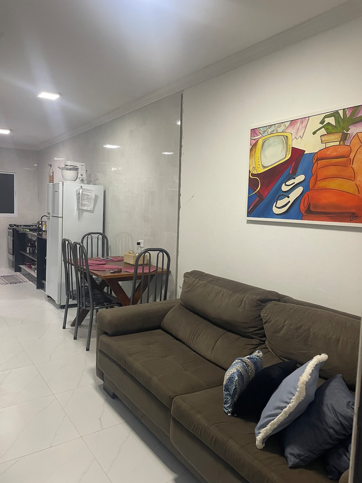 Totalmente mobiliado a 800m da praia, TV e Wi-Fi (fibra de 250mb). Piscina compartilhada com outros moradores do condomínio, portão eletrônico, cerca elétrica, garagem coberta particular, cama box Queen, cozinha e sala completas. 1 suíte mais 1 quarto e 1 banheiro social com chuveiro. Churrasqueira e área social particular. Lavanderia particular. DESCONTO ESPECIAL PARA ESTADIAS MENSAIS. * Não fornecemos roupa de cama