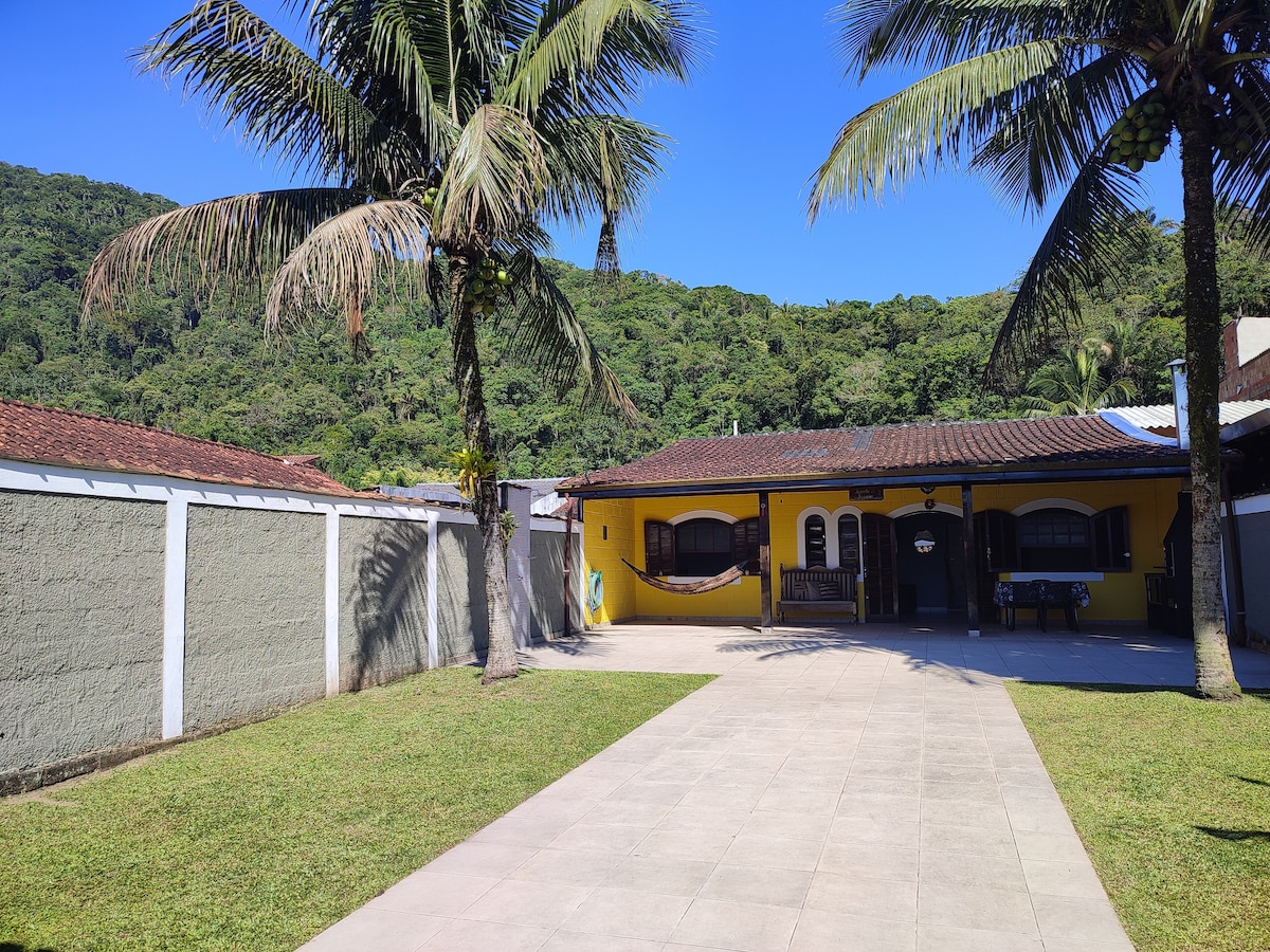 Casa no alto do morro da Praia Brava da Fortaleza com vista impressionante para toda a Enseada da Fortaleza. Estrada pavimentada (estrada concretada) até a casa. Estacionamento. Varanda deliciosa. Casa bonita, pratica e bem equipada. A é casa bem simples e rústica, como vocês podem ver nas fotos, mas a tranquilidade e vista do local garanto a vocês que não têm preço. Fica á 1 km (aproximadamente) da praia na qual o acesso é por uma trilha. Estamos localizados a 346 Km do Rio de Janeiro e 280 Km de São Paulo por tanto opções para passeio não irão faltar. Aqui mesmo em Ubatuba temos além das 84 opções de praias para vocês conhecerem, temos também o Projeto Tamar, Ilha Anchieta, Pico do Corcovado e Trilha do Bonete .Chegada na casa preferência carros 4x4 ou pessoas preparadas e dispostas a subir o morro pois é a parte mais crítica para quem não têm prática, caso a rampa estiver seca qualquer carro sobe (desde de que se tenha experiência, com subidas íngremes, não é obrigado a subir) mas se chover complica bastante, em dias de chuva o acesso até a casinha é feito á pé, uns 350 metros(aproximadamente) de subida íngreme. O carro do hóspede que não sobe a rampa, fica no viradouro, onde geralmente os carros que não sobem ficam, aqui é muito tranquilo, ninguém mexe. A Praia Brava é afastada do centro da cidade de Ubatuba (aproximadamente) 28 km. Na Praia Brava durante a temporada ficam 3 barracas de praias abertas e 1 de aluguel de cadeiras de praia e guarda-sóis. Na Praia da Fortaleza têm 3 quiosques e carrinhos de praia que vendem de lanches a roupas de praia, a Praia da Fortaleza fica distante da casinha (aproximadamente) uns 2 km, têm ainda como opção o restaurante Bacana, do Hotel Refúgio do Corsário, que fica no final da Praia da Fortaleza, onde pode se desfrutar também de uma piscina natural com direito a peixinhos e tartarugas no arrecife ambos localizados na Praia da Fortaleza. Detalhe a casinha é infiltrada no meio da natureza, então vamos ter muitos insetos, pernilongos, borrachudos, lagartixas (coco de lagartixas) e mariposas, tentamos sempre fazer o melhor, mas as vezes não é o suficiente.