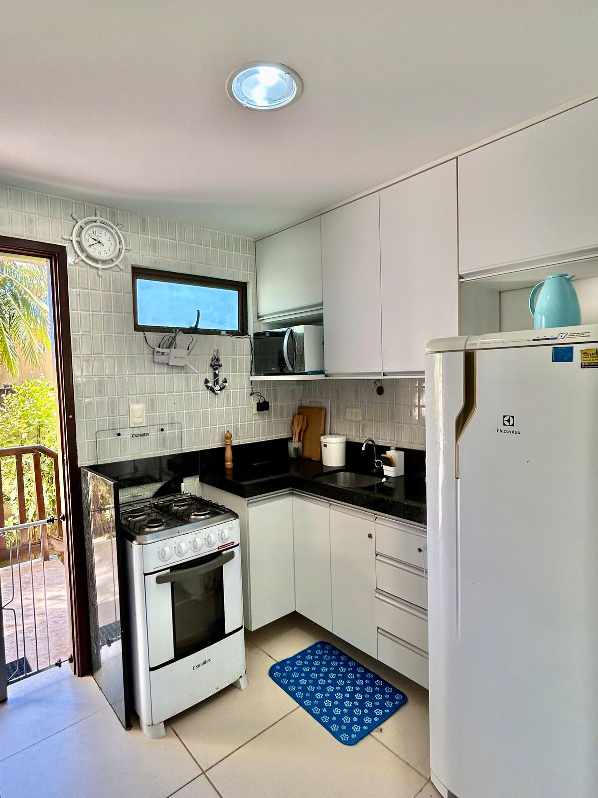 Muito ventilada, terraço com redes, jardim, árvores frutíferas e coqueiros. Ideal para quem procura tranquilidade e privacidade. Espaço para confraternizar ao redor da piscina com churrasqueira, mesas e banheiro exclusivo na área. Todos os 4 quartos com ar condicionado split, sendo 3 suítes e banheiro social. Têm armadores de rede na sala, no quarto e na varanda. Wi-fi e smart tv na sala. Cozinha equipada com duas geladeiras, microondas, fogão e Airfryer. Apenas a cem metros da praia.