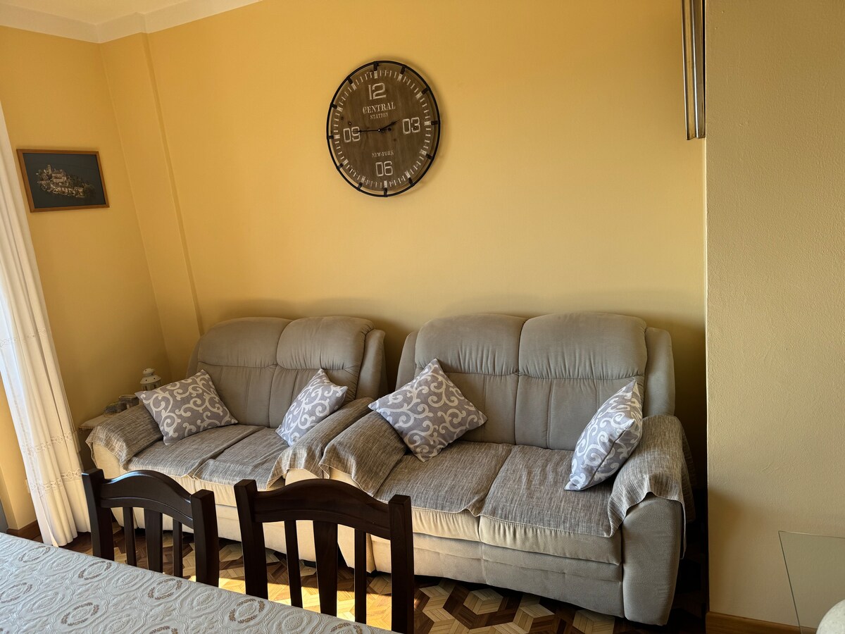 Nosso apartamento estúdio "Basciutin" é, na verdade, uma casa de 30 metros quadrados. É composto por 2 quartos: uma casa de banho com chuveiro, máquina de lavar roupa e secador de cabelo; um quarto individual com cama de casal e cozinha equipada. Tem um forno