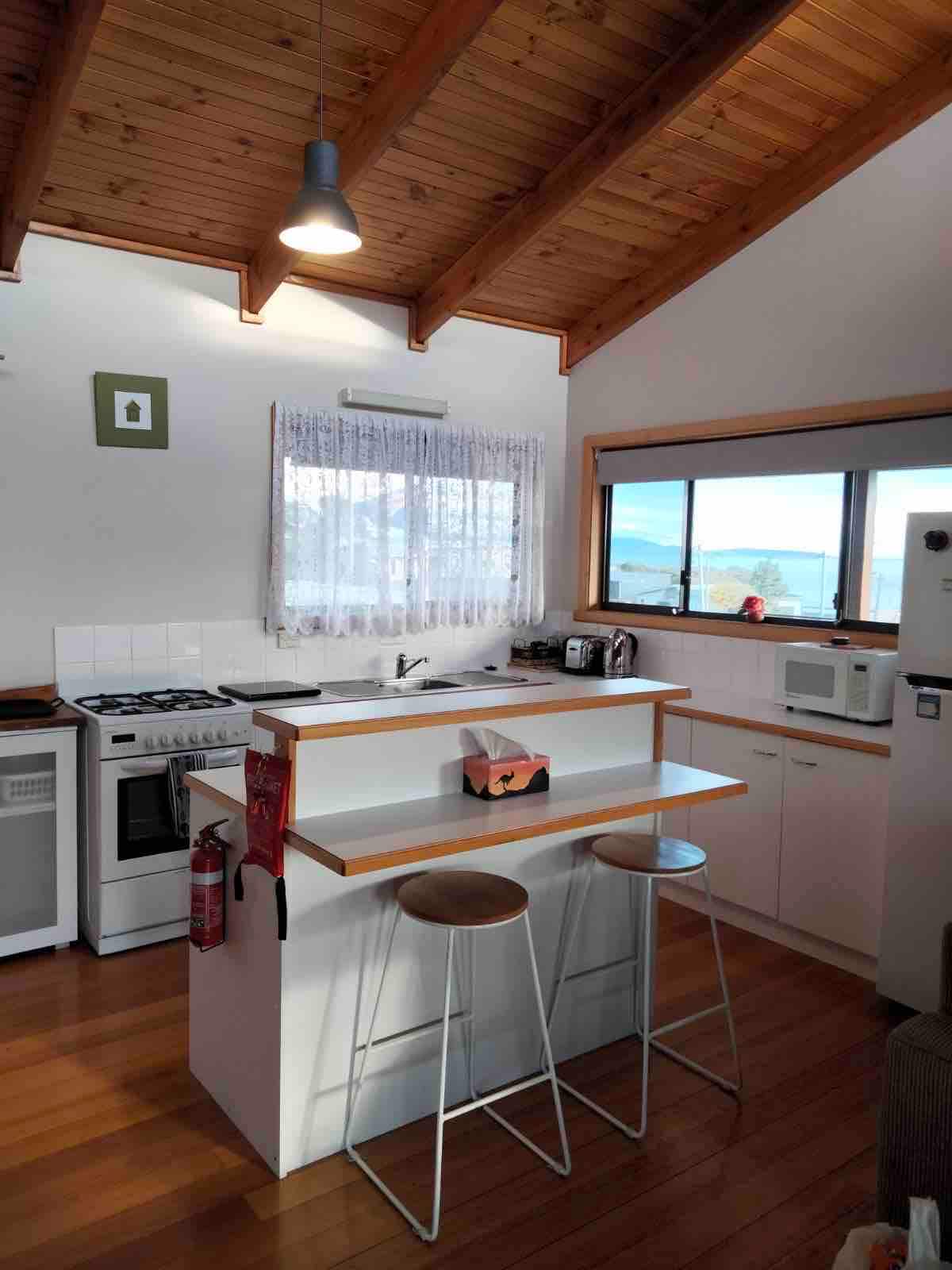 Situado entre gum nativo e banksia, o chalé tem vista para as águas límpidas da pequena Baía de Norfolk. Externamente misturando-se com seu ambiente e internamente apresentando madeira detalhada usando carvalho da Tasmânia dando uma sensação natural. Localizado centralmente dentro da Península de Tasman, fica a uma curta distância de carro de tudo o que é oferecido. Com: Cozinha/banheiro com design inteligente Banheiro interno e externo Chuveiro duplo Jogos de tabuleiro e livros Aquecedor a lenha Mesa/sala de estudo Cama king size Área de fogueira Ar-condicionado Refeições ao ar livre Churrasco