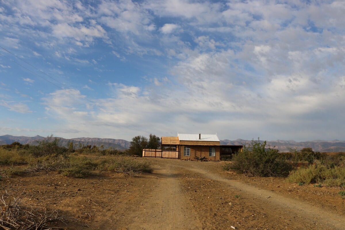 Escape to our stylish cottage in the heart of Prince Albert, Groot Karoo. This charming getaway boasts a spacious room with a king-sized bed and ensuite bathroom (and floor-bed for a small child and cot for a smaller child). Enjoy cooking in the fully equipped kitchen and unwind in your private garden oasis on a comfortable stoep. Located in a tranquil setting, it's perfect for solo travelers or couples seeking relaxation or couples with small kids. Larger groups? Consider booking both cottages!