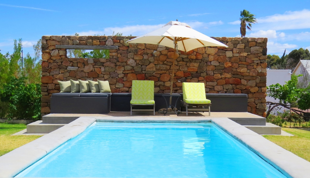 Localizado à beira da cidade, você encontrará The Orchard Cottage, uma casa de campo tranquila com estacionamento seguro no local e uma entrada privativa. A casa de campo movida a energia solar oferece uma cama queen-size, uma pequena cama de solteiro; banheiro privativo com chuveiro e cozinha acoplada com micro-ondas, placa de indução e máquina Nespresso e Wi-Fi. A varanda com churrasqueira embutida permite uma autêntica experiência Karoo e a oportunidade ideal para apreciar o espetacular céu noturno.