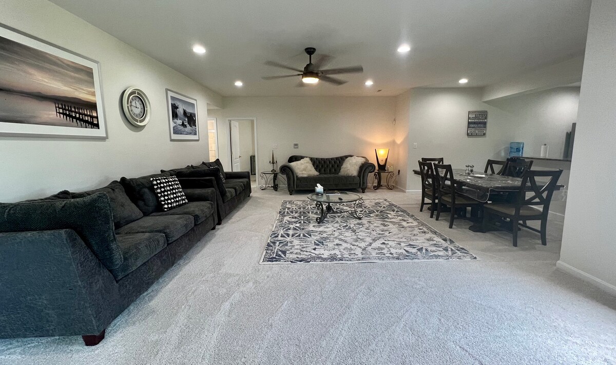 Bem-vindo à nossa luxuosa suíte cave de 2100 pés quadrados que possui um layout espaçoso e um estilo atualizado. Nas proximidades de Washington DC e I95, com três quartos, incluindo uma cama king e três camas queen-size, a nossa suíte acomoda confortavelmente todo o seu grupo. A nossa cozinha totalmente equipada inclui um fogão, frigorífico grande, máquina de lavar loiça, microondas, torradeira, máquina de café e mesa de jantar, fornecendo-lhe tudo o que precisa para cozinhar e jantar durante a sua estadia. Estamos confiantes de que vai adorar a sua estadia connosco!