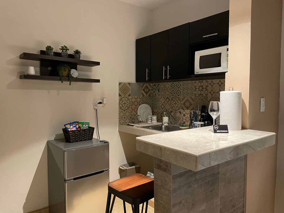 Beautiful apartment with an unbeatable location just one block from famous García Lavín Ave in the north of Mérida, where you will enjoy restaurants, the best nightlife area, gyms, supermarkets, shopping centers, and more. At Makou Apartments (Estudio R27A), you will experience a completely cozy and fresh atmosphere. Additionally, experience living in a building with unique design and amenities including a serviced bar, swimming pool, barbecue area, rooftop, and more. Equipped for long stays.