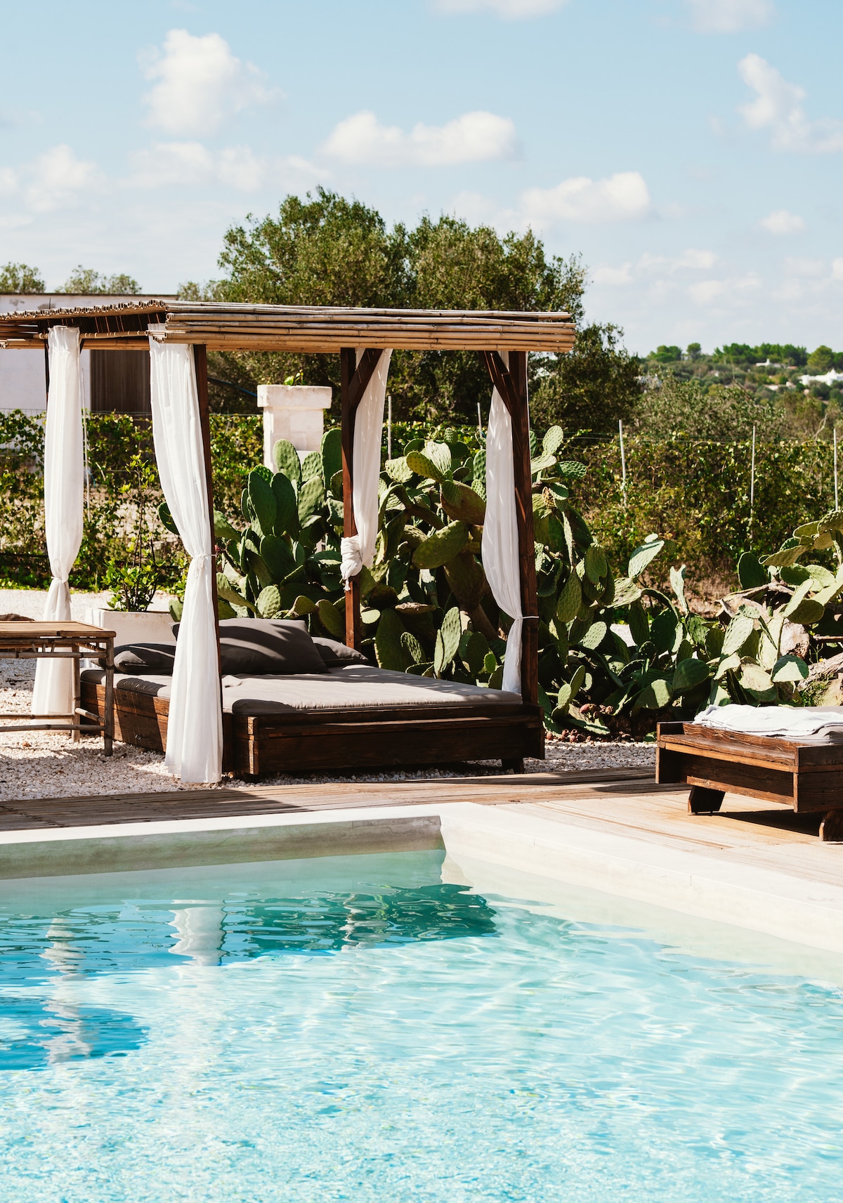 Dentro do Terra Sessana Country Resort, a Villa Blue com piscina privada está localizada no campo, a poucos quilómetros de Ostuni e das principais atrações da Apúlia. Faz parte de uma antiga Masseria do século XVIII, rodeada por jardins e oliveiras centenárias. É composto por dois quartos com casa de banho privativa, cozinha, duas amplas salas de estar, Spa com jacuzzi e Hammam. Os quartos são espaçosos, refinados, mobilados com mobiliário de época e equipados com todos os confortos.
