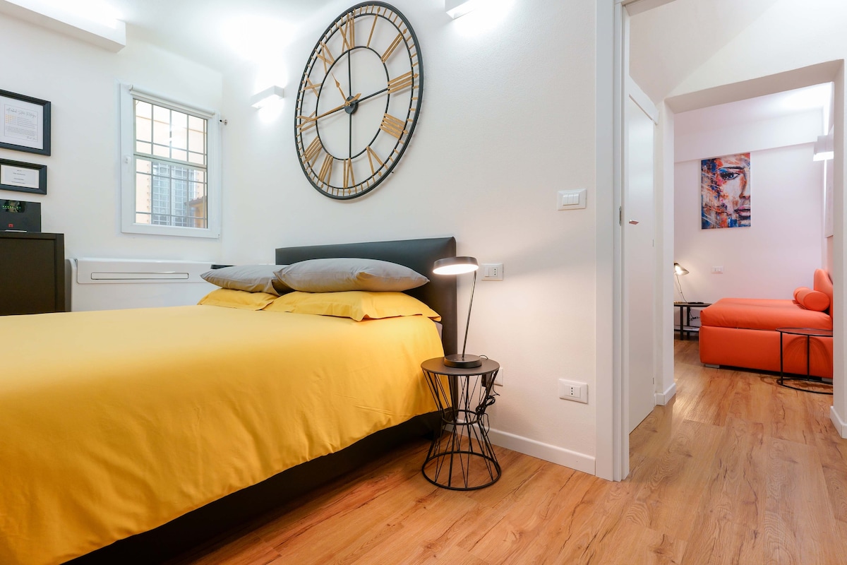 Delicioso apartamento de dois quartos localizado num edifício histórico no centro de Modena, estrategicamente localizado para caminhar até ao centro histórico e às principais atrações da cidade. O estacionamento coberto Novi Park está localizado em frente ao apartamento, e as estações de comboio e de autocarro estão a menos de 10 minutos a pé. Desfrute de uma vista fantástica da Torre Ghirlandina e dos telhados da cidade. O ambiente calmo e tranquilo tornará a sua estadia inesquecível.