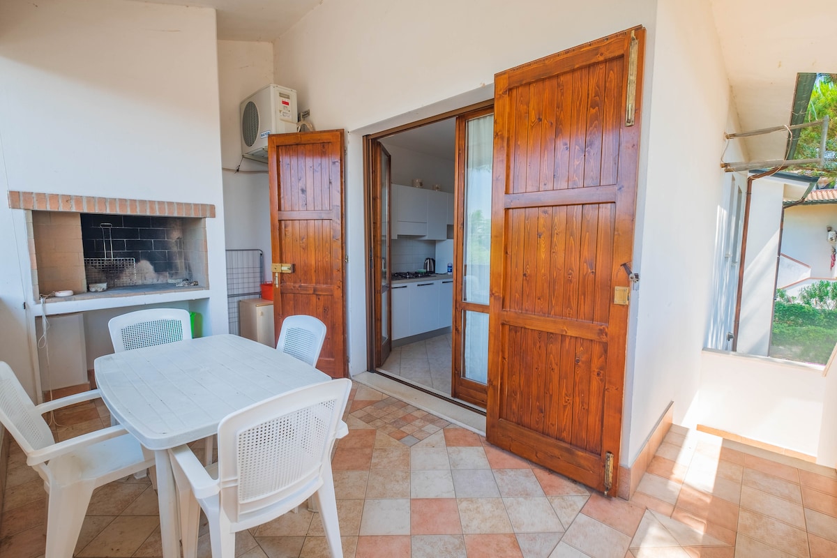 Moradia com terraço em 3 andares, localizada numa rua interna perto da floresta de pinheiros e a poucos passos da praia. Equipado com todas as comodidades. Entrada independente: pequeno jardim e alpendre sombreado com mesa de mármore (até 12 pessoas). Cozinha completa (máquina de lavar louça incluída). Sala de estar com um sofá e um canto de televisão. 2 casas de banho com chuveiro. Máquina de lavar roupa. 2 quartos: um de casal e um com 4 camas individuais e secretária. Espaço de estacionamento coberto. Fogão a pellets (para o inverno).