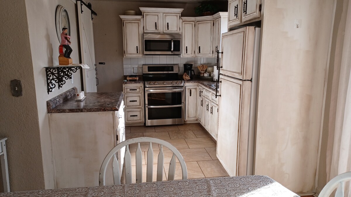 Relaxe nesta casa iluminada, arejada e limpa de 3 quartos e 2 banheiros em Belmont. Desfrute de renovações modernas, quartos confortáveis com ventiladores de teto e uma espaçosa sala de estar. O quarto principal tem um banheiro privativo, e o cantinho aconchegante com um toca-discos é perfeito para relaxar. Saia para um quintal totalmente cercado, ideal para animais de estimação ou noites relaxantes. O pátio e a lareira externa criam um retiro ao ar livre acolhedor. Localizado perto das atrações de Pueblo e a uma curta distância de carro de Canon City, este refúgio tranquilo espera por você!