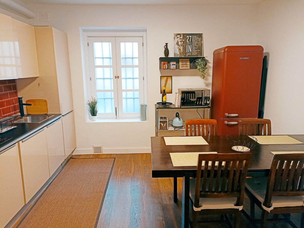 Lindo apartamento de estilo moderno localizado no centro histórico de Cádiz, uma área imbatível para conhecer toda a cidade velha a pé. Perto da Catedral, prefeitura, mercado central, bairros mais populares e inúmeros restaurantes e bares de tapas para desfrutar da gastronomia de Cádiz. A 10 minutos a pé da praia de Santa María del Mar. A 5 minutos a pé da estação de trem, pontos de ônibus e táxis.