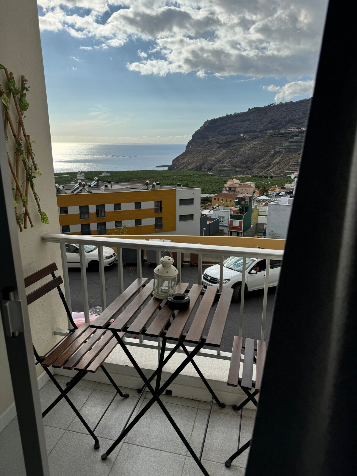 O nosso encantador apartamento à beira-mar está localizado em Puerto Tazacorte, no primeiro andar de um edifício notavelmente azul. Simples, mas cuidadosamente mobilado, é espaçoso o suficiente para até 4 hóspedes e tem vista para as montanhas e para o Oceano Atlântico. Localizado diretamente no passeio acima de uma gelataria, fica exatamente a 54 passos da porta da praia. A aldeia tem todas as comodidades essenciais: um pequeno supermercado, uma farmácia, restaurantes e ligações de autocarro para o resto da ilha.