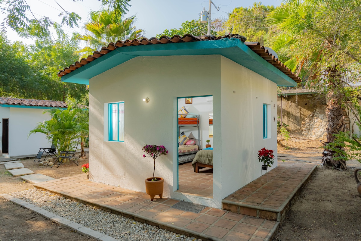 Estúdio privado rodeado pela natureza, onde irá desfrutar de noites tranquilas e estreladas. O quarto é completamente independente, tem água quente, cama queen size Tem uma máquina de café, frigobar, liquidificador e os utensílios necessários para poder tomar um pequeno-almoço ou jantar simples. Também tem uma área especial no exterior, onde pode lavar a loiça e colocar toalhas para secar. É muito fácil aceder aos transportes públicos e estamos a 10 minutos do centro de Puerto Escondido