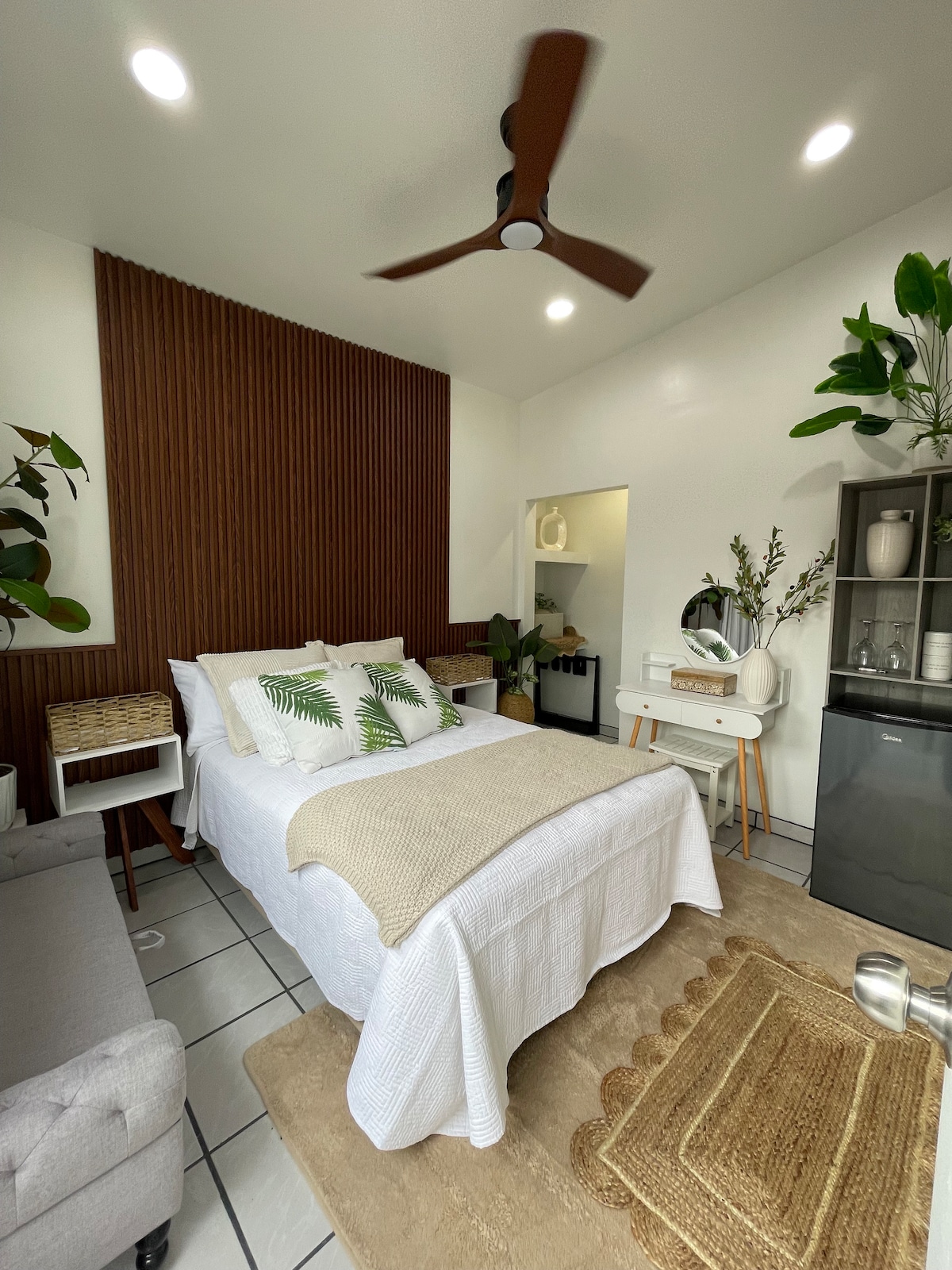 This PRIVATE unit has a unique style of its own. It’s fully black which makes it perfect to relax, and binging on your favorite movies/series. King size mattress and 75” TV *AC/Heater *Fast Wifi Enjoy the beautiful sunset from our two-person bathtub & private Terrace (Best view in the area!)🌅 Outdoor Kitchen 🍳/ Living Room with fire pit & MovieTheater! 🎥 Located inside a gated residential (24/7 security) Walking distance to local bars, Restaurants, and MalibuBeach(~1mile)