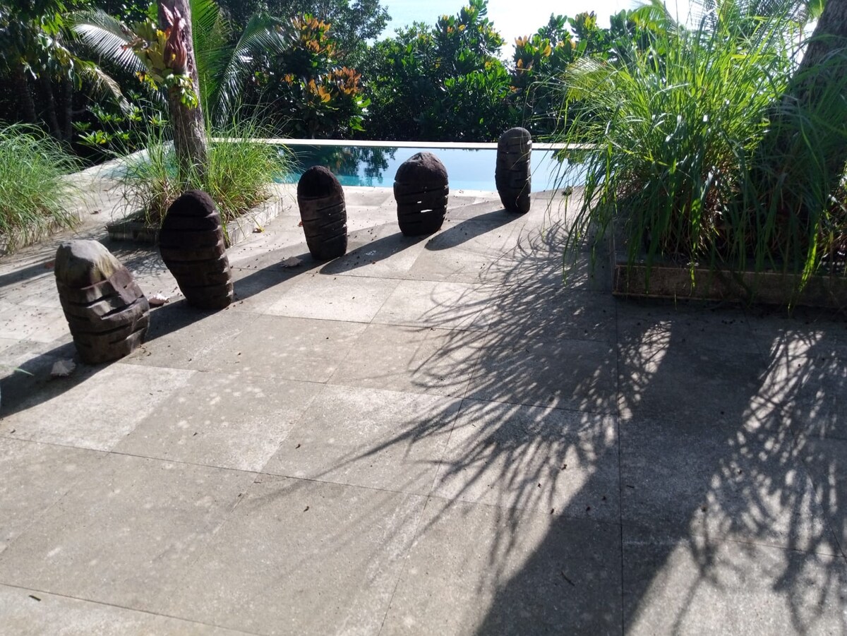 Somos uma propriedade à beira-mar ao longo da costa leste de Bintan, Indonésia. Basta olhar para o vasto oceano de azuis e verdes. Imagine ilhas perfeitas no horizonte e sonhe longe. Passeie por praias de areia branca e deixe o mar bater seus pés. Estamos aninhados entre pequenas aldeias locais. Caminhe e sinta a serenidade da vida no vilarejo. Coma uma variedade incrível e maravilhosa de comidas e frutas locais. A vibração no TenRooMs é privada e muito relaxada. Um refúgio perfeito da movimentada Singapura. Por favor, entre em contato conosco se temos quartos disponíveis, mesmo que o calendário sugira que estamos reservados