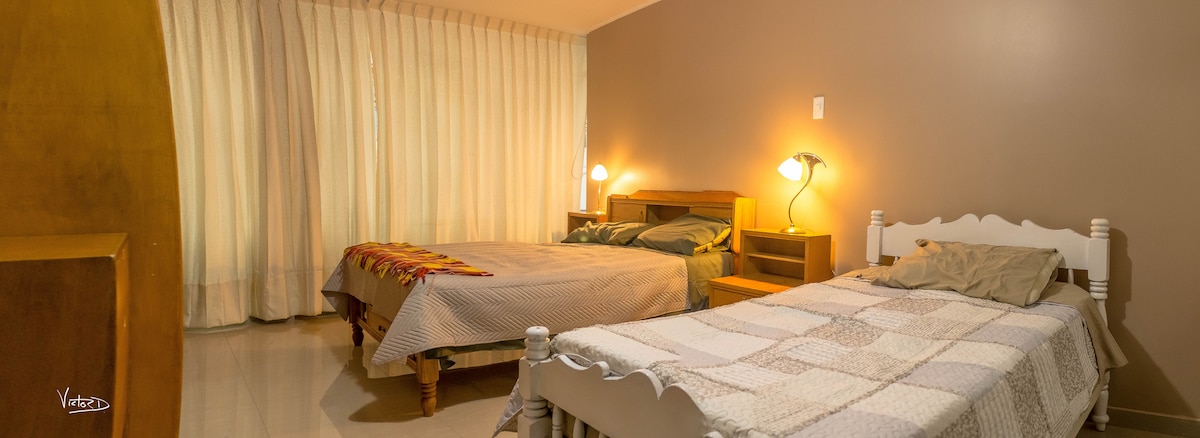 Apartamento com dois quartos, sala de estar, sala de jantar e cozinha equipada com tudo o que precisa para preparar e cozinhar alimentos. Muito confortável, espaçoso e tranquilo. Temos uma garagem no local. Temos acesso Wi-Fi e televisão por cabo. Está localizado perto do mercado Laykakota, parques, restaurantes, terminais e farmácias. A área é tranquila, muitas empresas de transportes urbanos, táxis e mototáxis passam. Desconecte-se das suas preocupações neste espaço espaçoso e sereno.