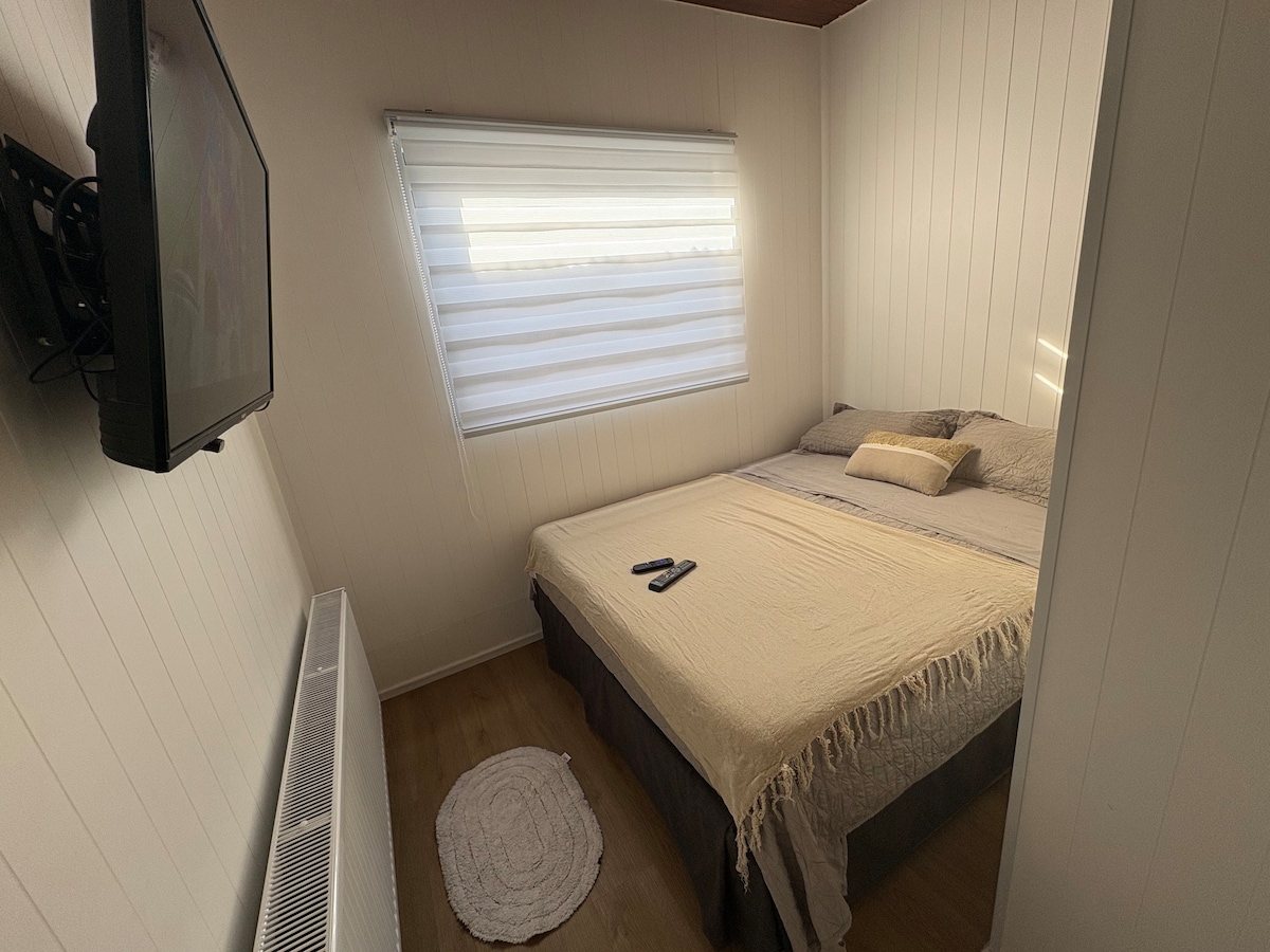 Desfrute da simplicidade deste alojamento tranquilo e central, que será a base perfeita para conhecer esta bela cidade cheia de charme. Esta pequena cabana será para si um lugar muito acolhedor onde pode ir sozinho ou com quem quiser. A cabana é composta por um quarto espaçoso onde pode tomar o pequeno-almoço, também tem um pequeno frigorífico para manter os alimentos. Também tem uma casa de banho completa com um secador de cabelo. Não se vai arrepender, vai sentir-se como se estivesse no campo.