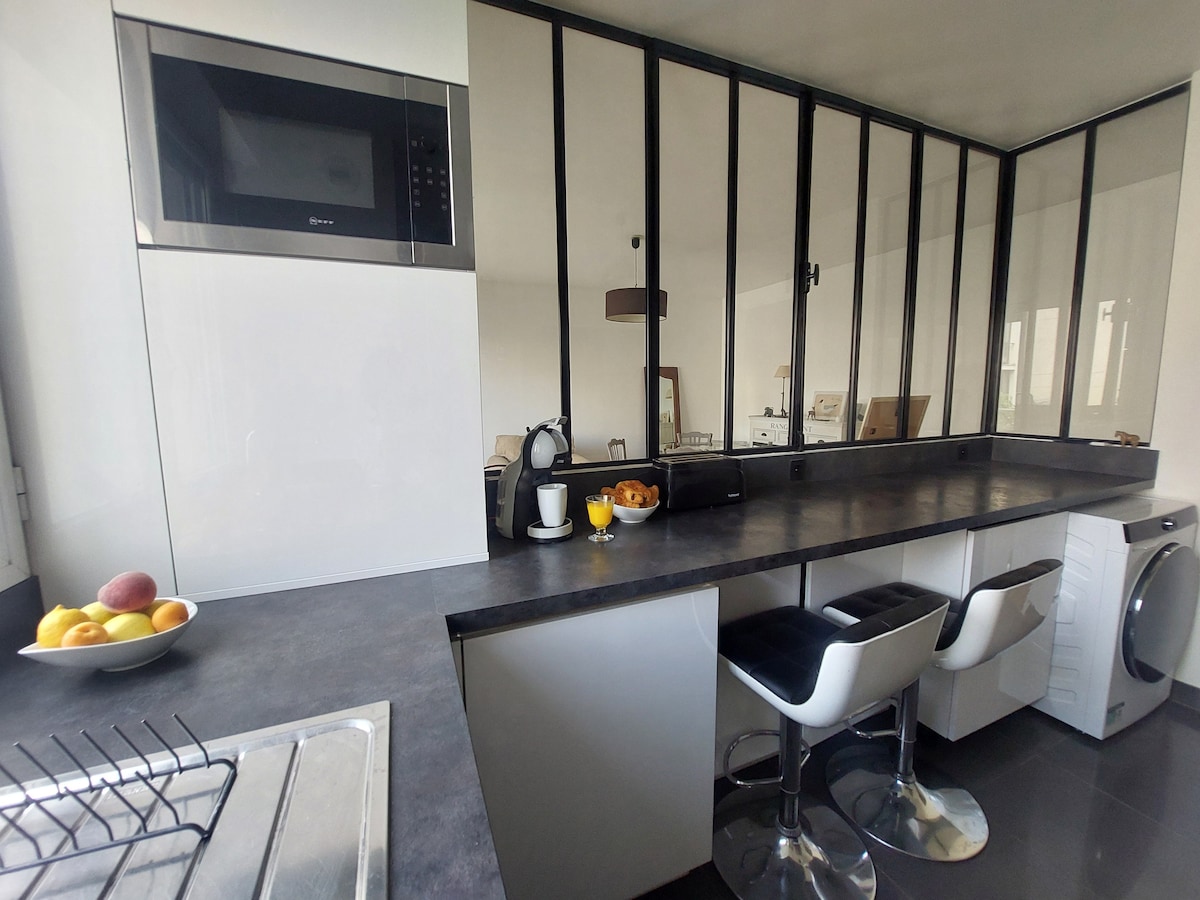 Visitar a trabalho? Um fim de semana para casais, famílias ou grupos de amigos? Este lugar nos arredores de Paris será perfeito para si! 📌 Localizado no centro de Puteaux → Bairro de La Défense a 🏢 5 minutos de transporte ou a 15 minutos a pé. → Perto da Arena Paris La Défense 🏀🎸 🛍️ Várias empresas próximas 🍷 Bairro vibrante com muitos restaurantes e bares